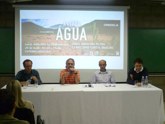 Ao término da exibição foi montada uma mesa-redonda com a presença do Prof. Dr. Ricardo Luiz Bruno (Coordenador curso de Engenharia Química e representante da FHO|Uniararas no comitê de bacias do rio Mogi), Prof. Dr. Julio V. Betioli (docente do curso de Biologia), Prof. Ms. Aloisio C. Bozzini (docente do curso de Biologia e Bacharel em Direito - especialista em Direito Ambiental) Prof. Ms. Carlos E. Signorini (Coordenador do Curso de Biologia) e o Prof. Dr. Olavo Raymundo Jr. (Pró-Reitor de Graduação e biólogo); que discutiram alguns pontos relacionados à temática do filme, como a crise e gestão hídrica no estado de São Paulo, em especial no município de Araras, impactos da remoção de matas ciliares, flexibilização da legislação ambiental e importância do posicionamento político para se resolver conflitos entre meio ambiente e sociedade. Compareceram ao evento os alunos do curso de Ciências Biológicas, Bacharelado em Química e Engenharias.