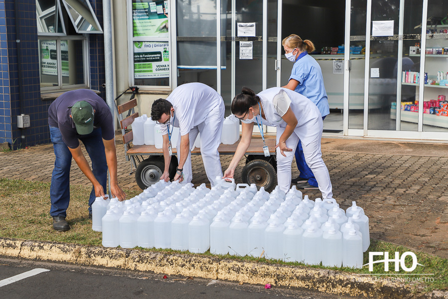 Ao todo, 200 galões dos produtos foram entregues ao hospital, que atende o município de Araras e região. "Este é um momento muito especial para a FHO, pois estamos entregando oficialmente para a Santa Casa de Araras o álcool que a Usina São João doou para nós. Este material foi manipulado em nossa Farmácia-Ensino e rendeu 800 litros de álcool 70% e 200 litros de álcool em gel. Ficamos muito felizes de poder, mais uma vez, ajudar a Santa Casa e os profissionais da saúde", comentou o Reitor da FHO, Prof. Dr. José Antonio Mendes.