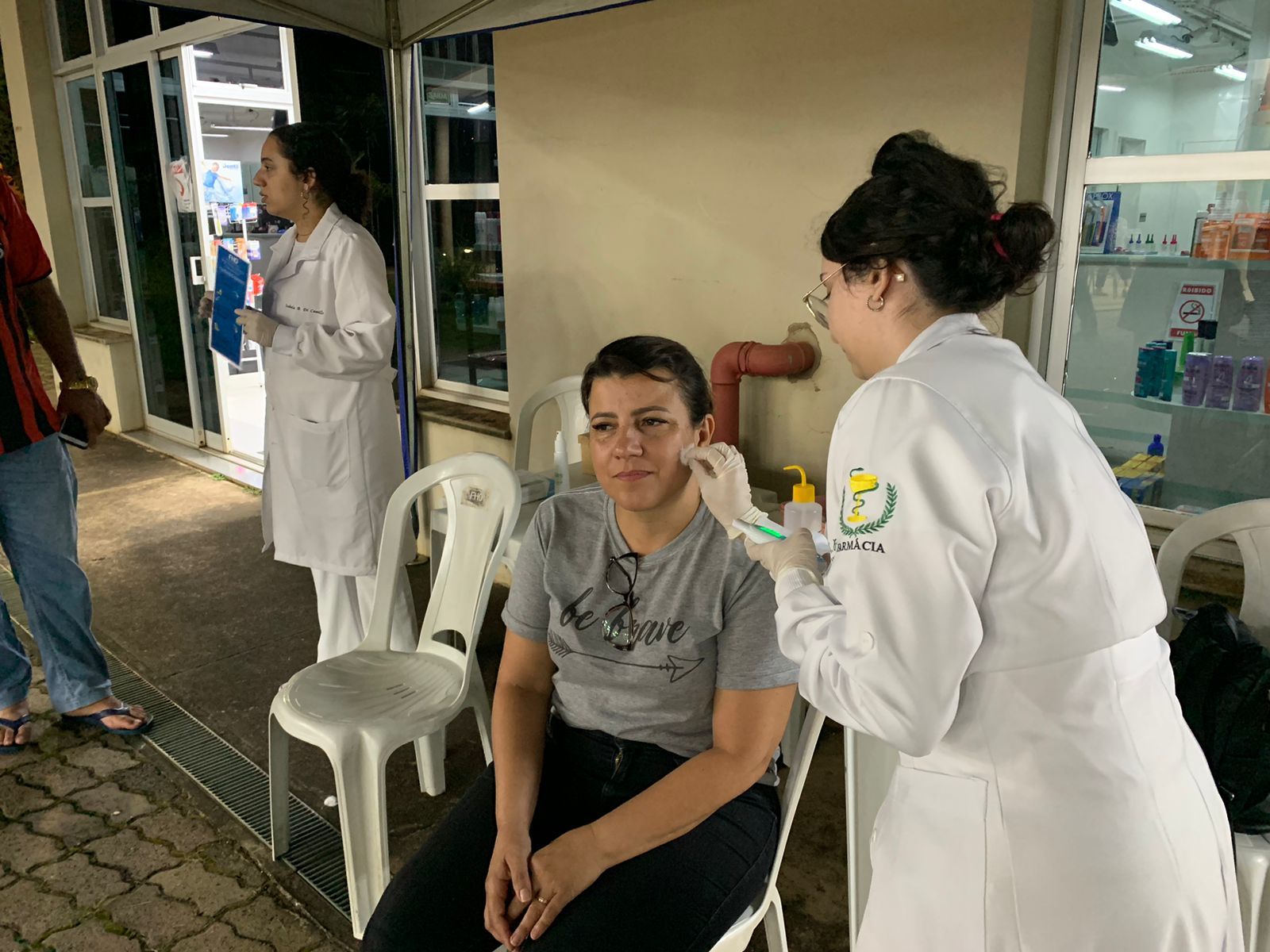 A ação aconteceu nos três períodos com a participação de alunos do curso de Farmácia e promoveu mais de 100 atendimentos para alunas e funcionárias da Instituição.