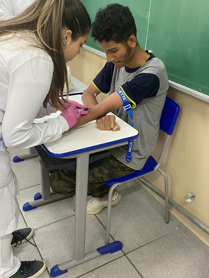 Em um segundo momento, mais de 30 estudantes participaram de coleta sanguínea gratuita para exames de hemograma e tipagem sanguínea, realizados no Laboratório de Análises Clínicas da FHO. A partir disso, se identificada a necessidade, é realizado o encaminhamento do(s) caso(s) para os postos de saúde para consulta médica e prescrição de tratamento.