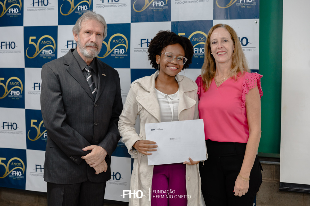 Acompanhados de seus familiares, os alunos contemplados e suas famílias tiveram suas conquistas pessoais reconhecidas também pelo Reitor. ''Terminar o ensino médio é uma das tarefas mais difíceis hoje no Brasil, infelizmente. Mais de 40% dos jovens brasileiros ficam pelo caminho. E vocês conseguiram. Isso se deve ao esforço de vocês e ao trabalho que os professores, coordenadores e diretores das escolas públicas fazem nas escolas de Araras. E a partir de agora vocês estão entregues aos nossos coordenadores e professores nesta nova jornada. A sua carreira vai ser formada lá na frente a partir de tudo o que você construir aqui na FHO. Então aproveitem!'', falou o Prof. Dr. José Antonio Mendes, que também parabenizou e agradeceu aos pais pela confiança que depositam na FHO.