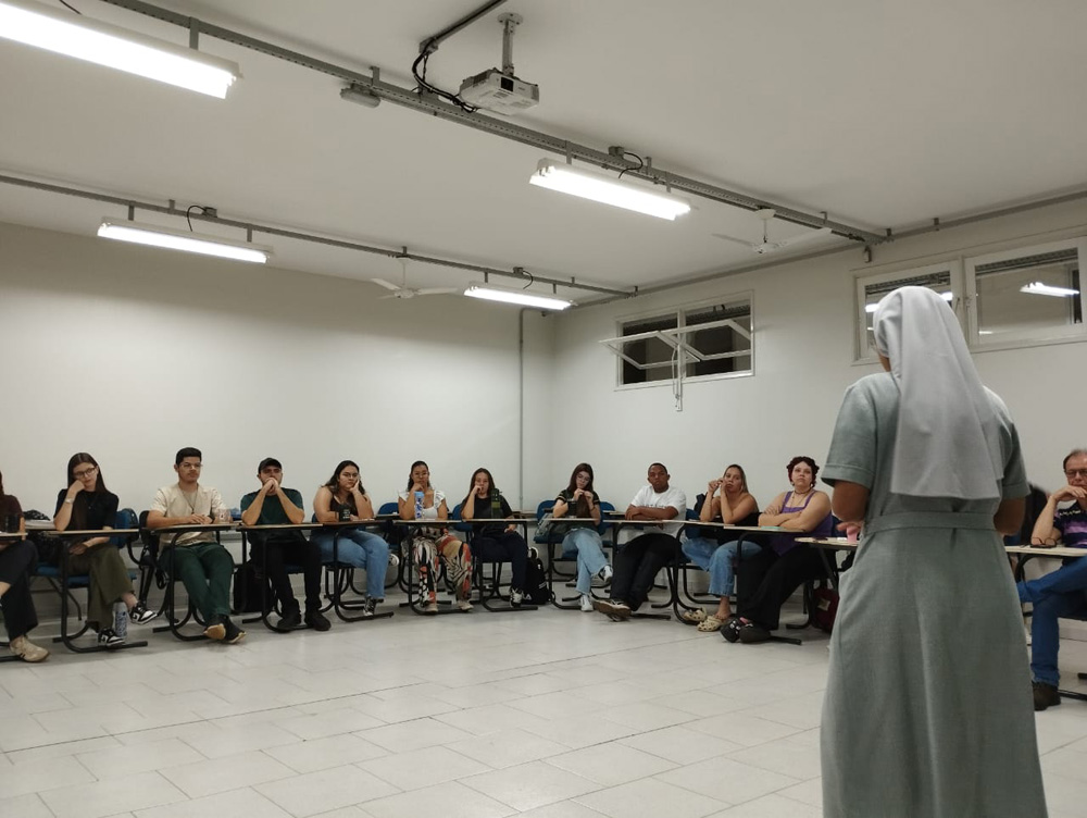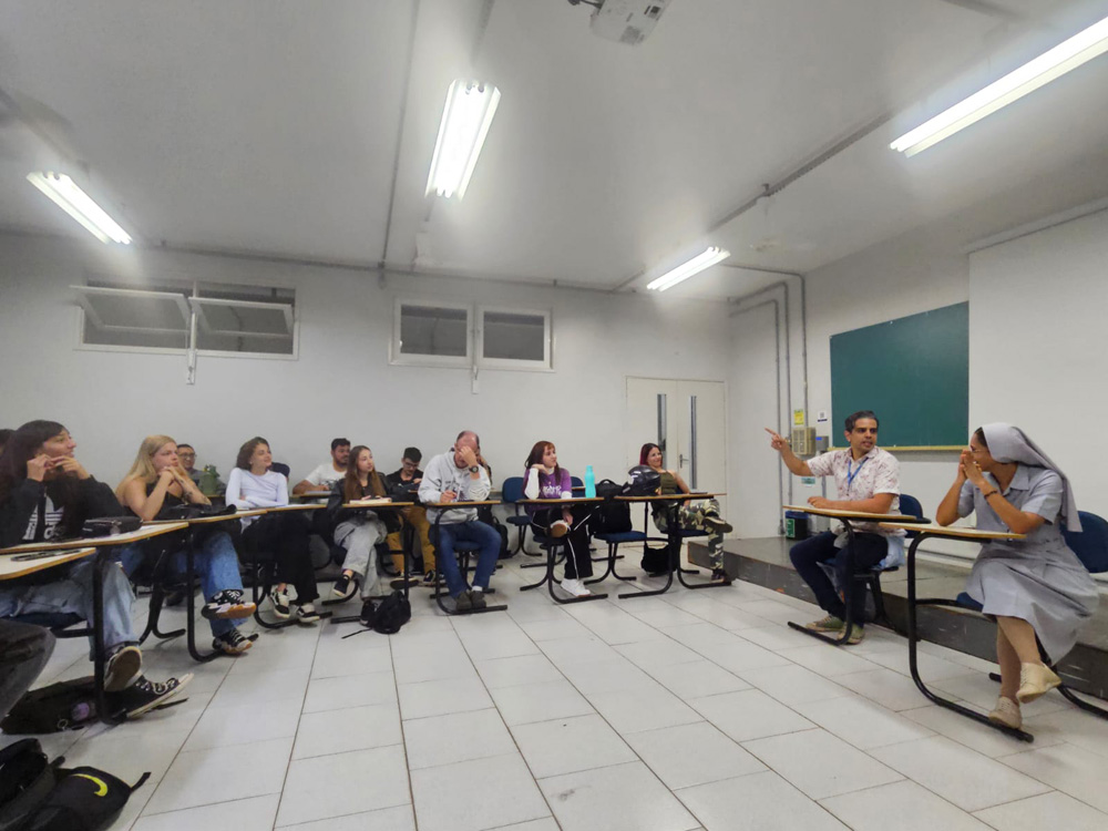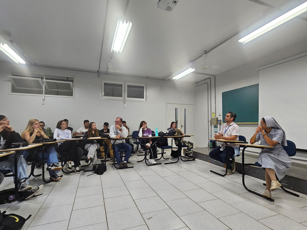 O evento contou com a presença da Irmã Isabella Goulart Pereira, do Instituto das Filhas da Caridade Canossianas, para compartilhar suas reflexões sobre Educação, Ciência e Religião a partir de uma perspectiva acadêmica e fundamentada juntamente com o professor e os alunos.
