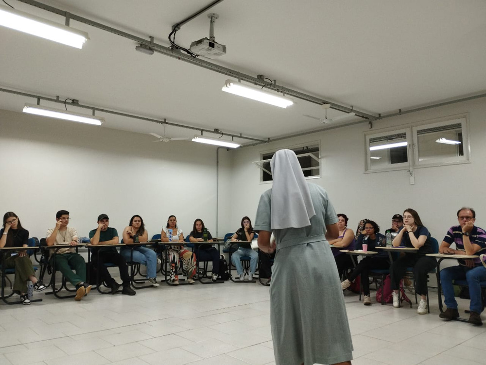 Durante a roda de conversa, Irmã Isabella compartilhou suas vivências como freira e estudante, além de suas experiências na Educação. O diálogo foi marcado por respeito, atenção e envolvimento dos estudantes e futuros professores e professoras de Biologia. ''A Irmã Isa foi minha aluna na disciplina de Sustentabilidade, enquanto cursava Pedagogia na FHO. Sempre muito engajada nos debates e atividades, participou de um plantio do Projeto Carbono Zero e tornou-se uma amiga pessoal. Sempre que tenho a oportunidade, a convido para falar com os estudantes sobre o importante e necessário diálogo entre Ciência e Religião, duas formas de conhecimento que não são, e nem devem ser, antagônicos'', comentou o Prof. Diogenes.