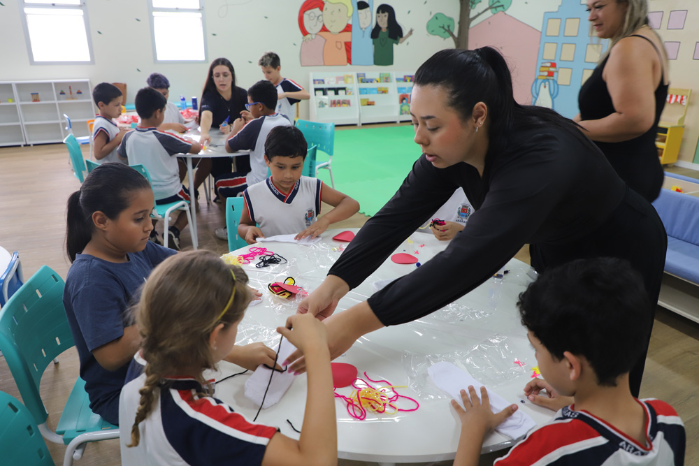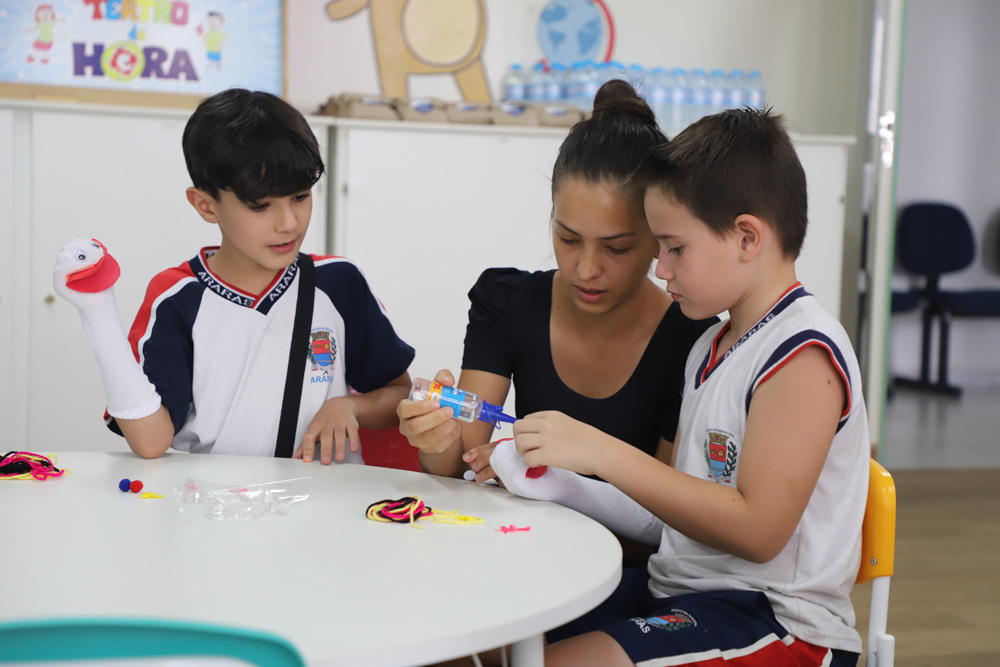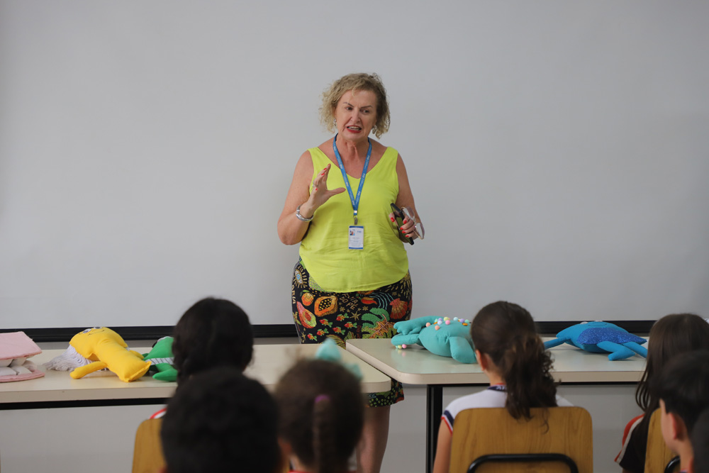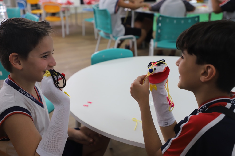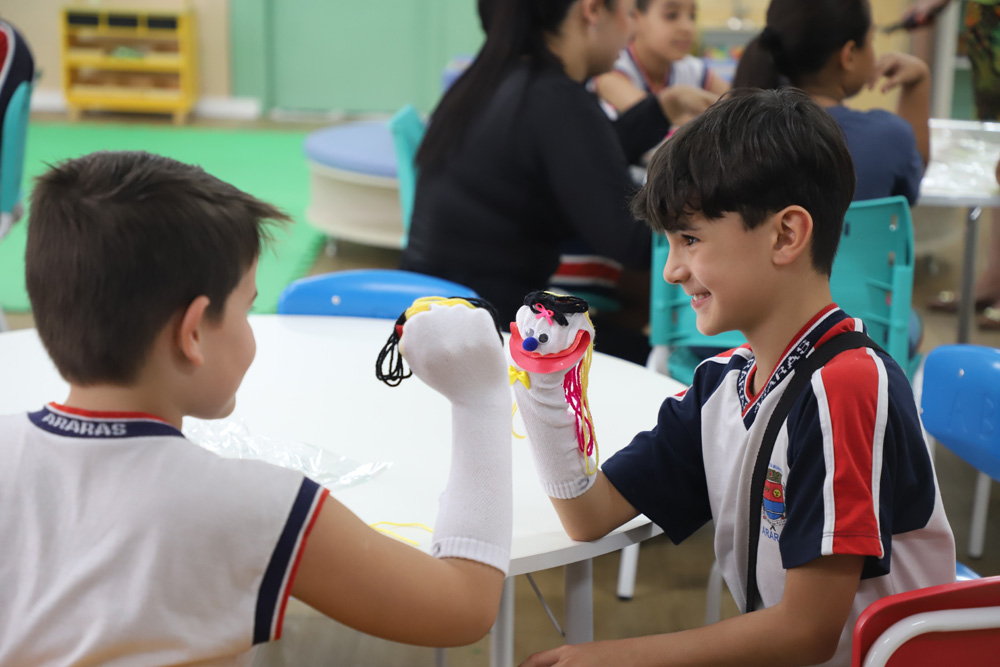 Além das atividades educativas, as crianças participaram da confecção de seus próprios fantoches e puderam levar os brinquedos confeccionados como lembrança da tarde.