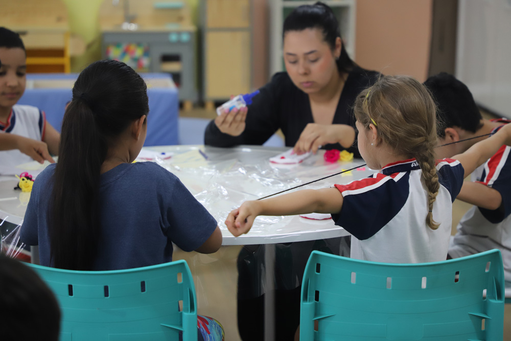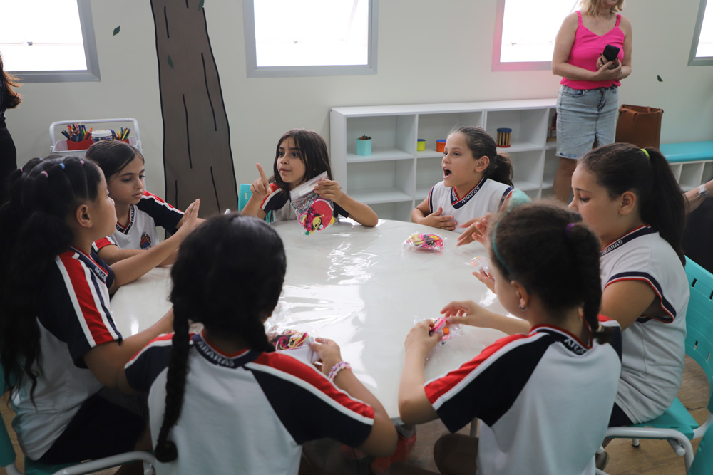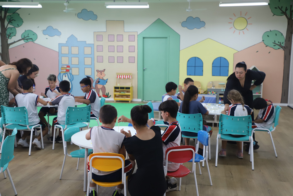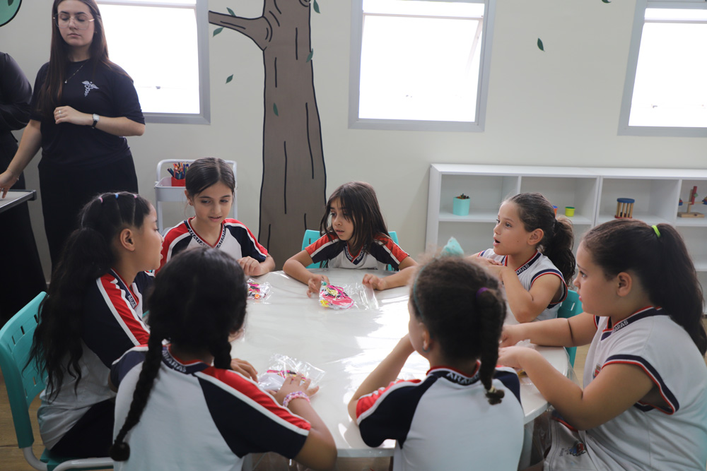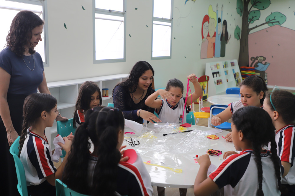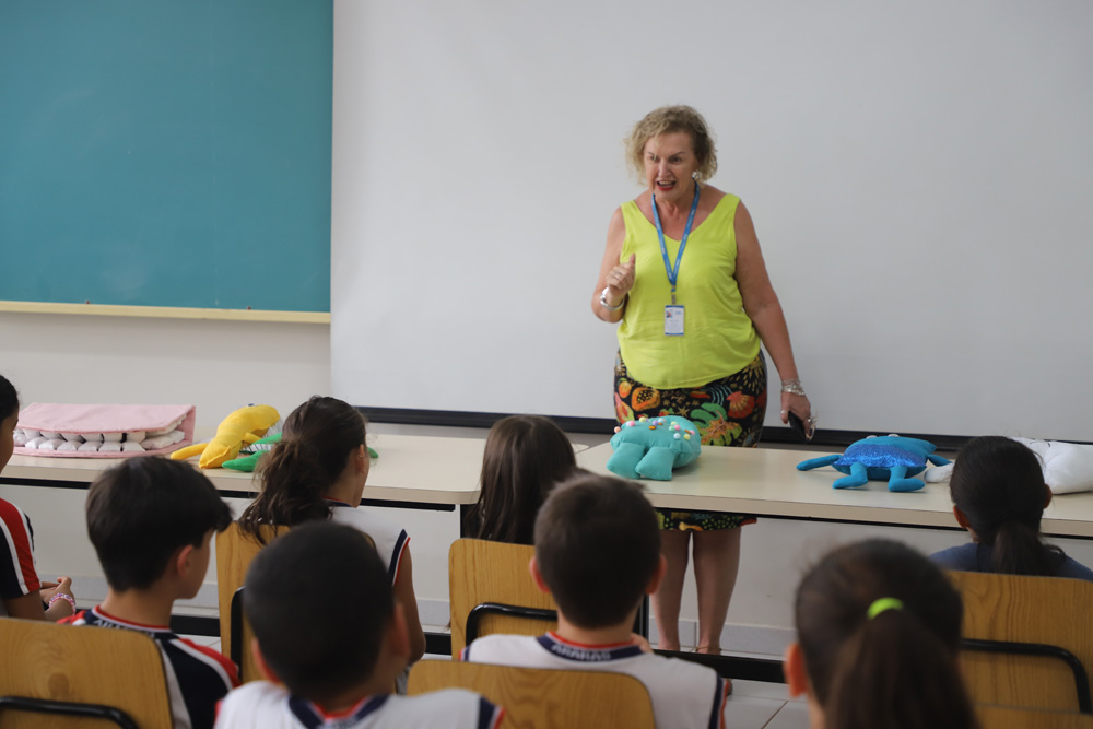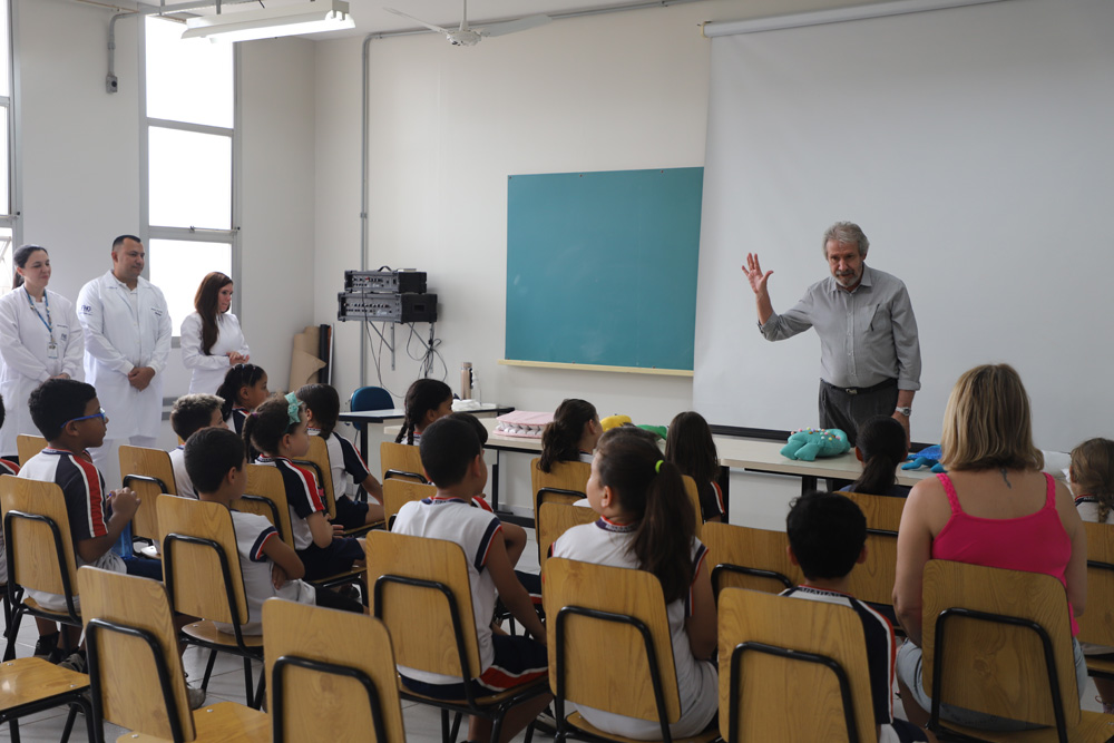 As crianças foram acolhidas pela coordenadora do curso, a Prof.ª Dra. Aneridis Monteiro, e pelas professoras Dra. Paula Nascimento da Silva Moura, Ma. Maria Luiza Vechetin Begnami e Ma. Renata Luigia C. Garcia, juntamente com as alunas Nathalia de Oliveira Alves, Estela Fernanda de Oliveira, Elizama Gomes Sampaio e Sara Alves Gomes.