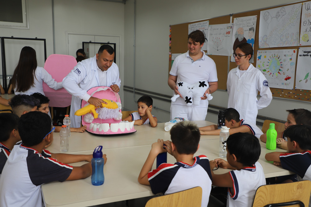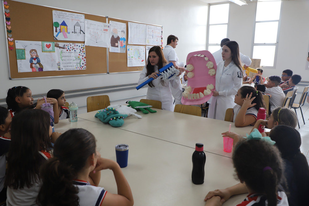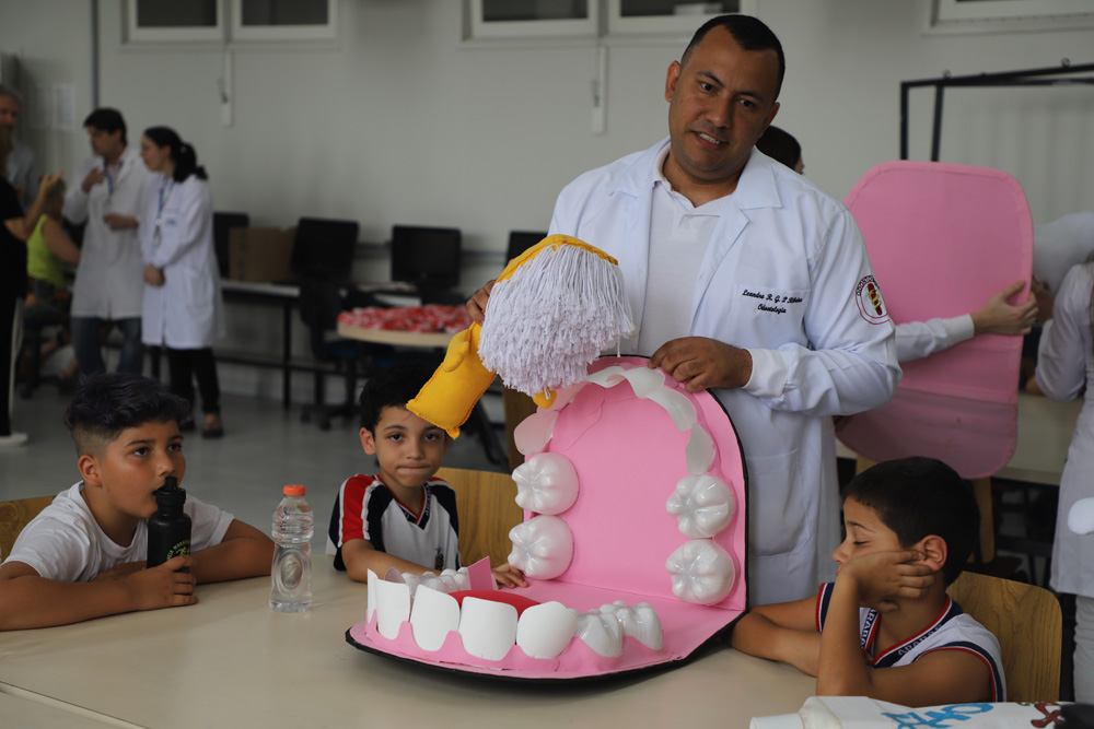 Como parte da programação interdisciplinar, os alunos convidados também participaram da ''Oficina de Higiene Bucal'', ministrada pelos professores Dr. Milton Santamaria Júnior e Dra. Laura Nobre Ferraz Jardim e alunos do curso de Odontologia e do Programa de Pós-Graduação em Odontologia (PPGO). Durante a oficina, as crianças participaram de atividades práticas e orientações sobre cuidados com a saúde bucal, escovação adequada, alimentação saudável e prevenção de cáries, além de receberem kits de higiene bucal preparados especialmente para a ocasião.