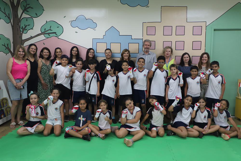 No dia 6 de outubro, o Curso de Pedagogia da FHO promoveu uma tarde lúdica e educativa na Brinquedoteca em comemoração ao Mês das Crianças, no evento ''Mundo da Imaginação: contação de histórias e oficina de confecção de fantoches''. A atividade contou com a participação de alunos e professoras do 3º ano da Escola Municipal Júlio Ridolfo.