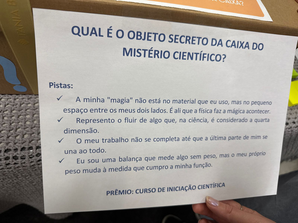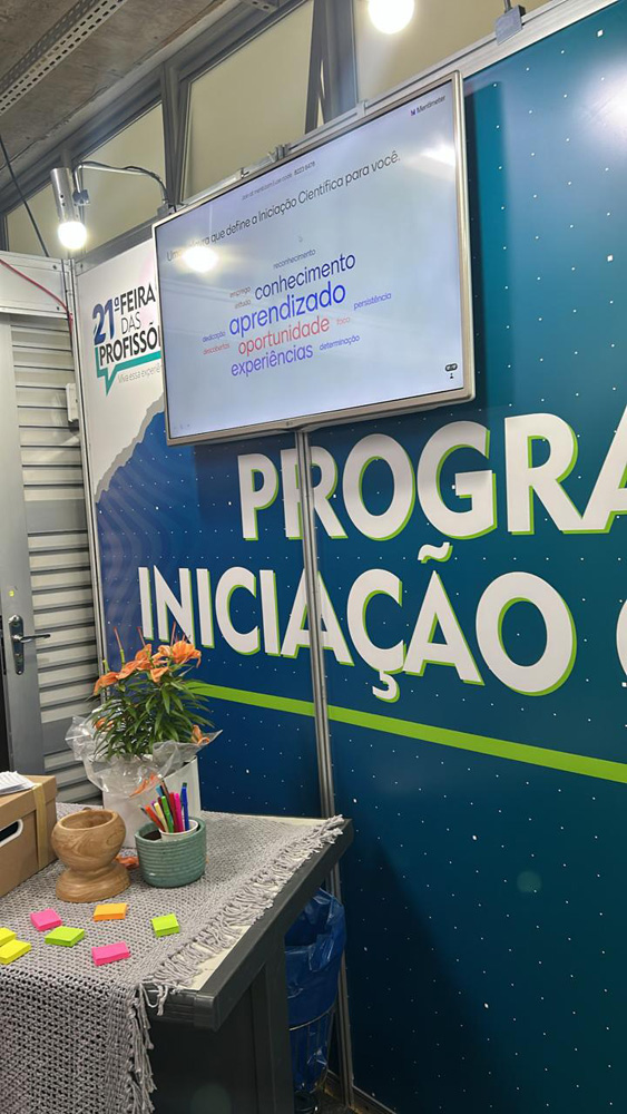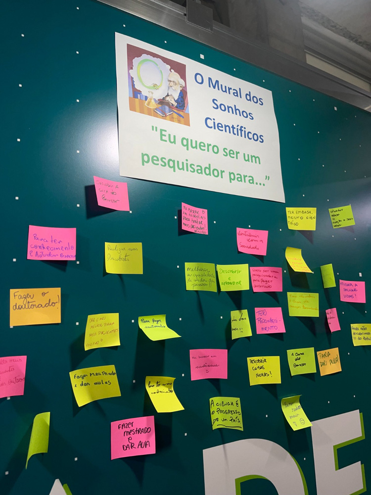 O estande foi estruturado para oferecer uma experiência didática e interativa, composta por três fases: (1) A Descoberta, com o quizz lúdico ''Descubra qual cientista você é!''; (2) O Processo, por meio de bate-papos entre os visitantes e alunos e professores do Mestrado e da IC, identificados por crachás com o incentivo ''Pergunte ao Pesquisador'', e da ''Caixa do Mistério Científico''; (3) O Futuro, representado pelo ''Mural dos Sonhos Científicos'' reuniu mensagens e aspirações dos visitantes sobre propósito e impacto social da ciência.