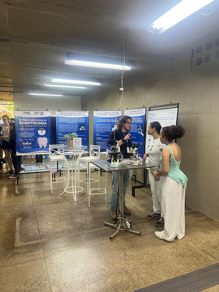 Durante a 21ª edição da Feira das Profissões, a FHO transformou o campus Araras em um ambiente de descobertas com uma programação diversa de atividades, incluindo o estande do Programa de Iniciação Científica (IC), coordenado pelo Programa Mestrado Profissional em Odontologia (PPGO).