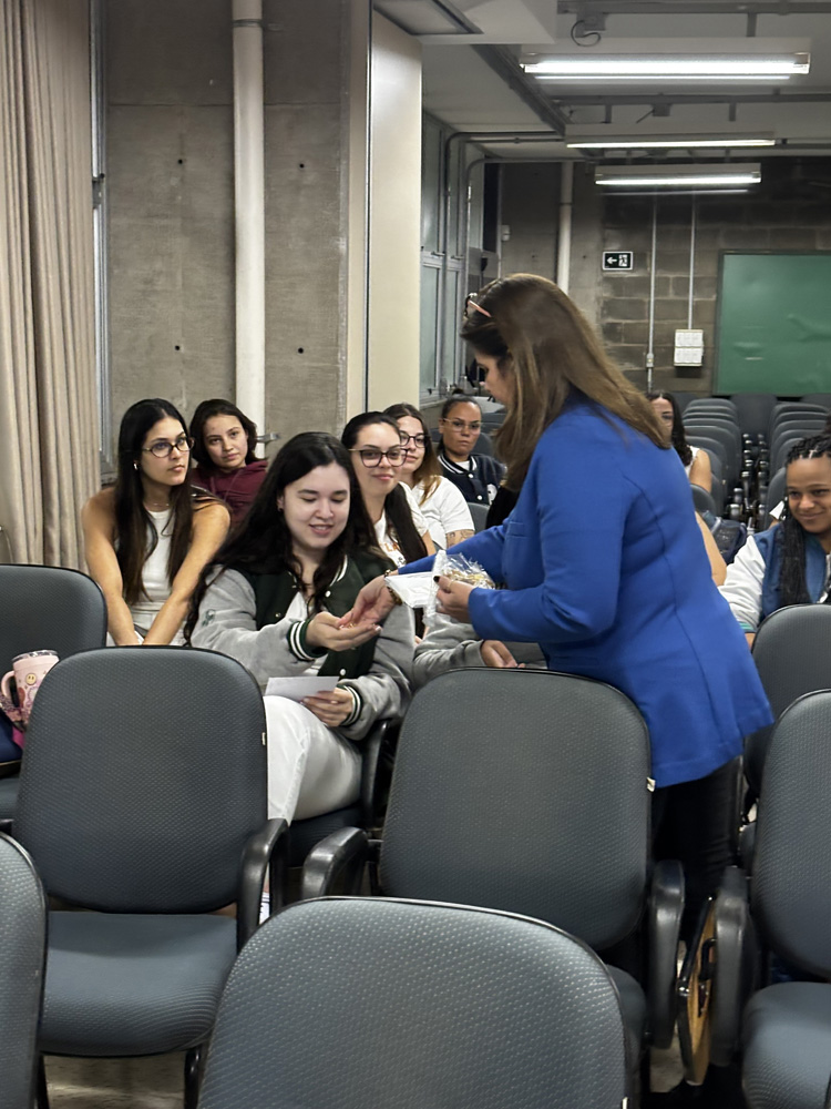 Com base em suas vivências práticas e experiência na área, a Dra. Rosângela também esclareceu os limites de atuação do biomédico e discutiu situações reais que envolvem o cotidiano da profissão, incentivando os alunos a refletirem sobre a responsabilidade e o compromisso ético necessários ao exercício biomédico.