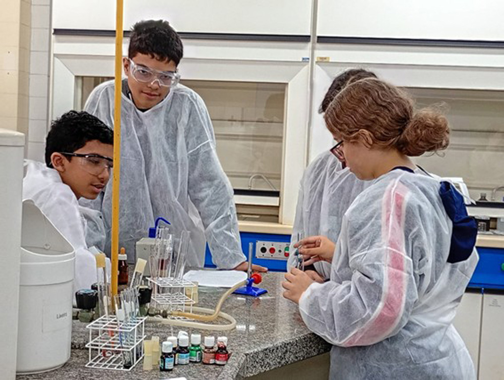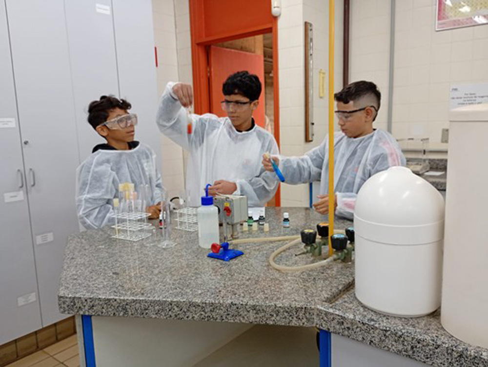 Durante a visita, os alunos puderam ver reações químicas coloridas e técnicas de separação de misturas, conectando conceitos de Química em atividades divertidas e educativas. Mais do que uma aula fora da escola, o projeto promove o pensamento científico, a curiosidade e o gosto pela descoberta, estimulando a integração entre o ensino básico e o ambiente universitário.