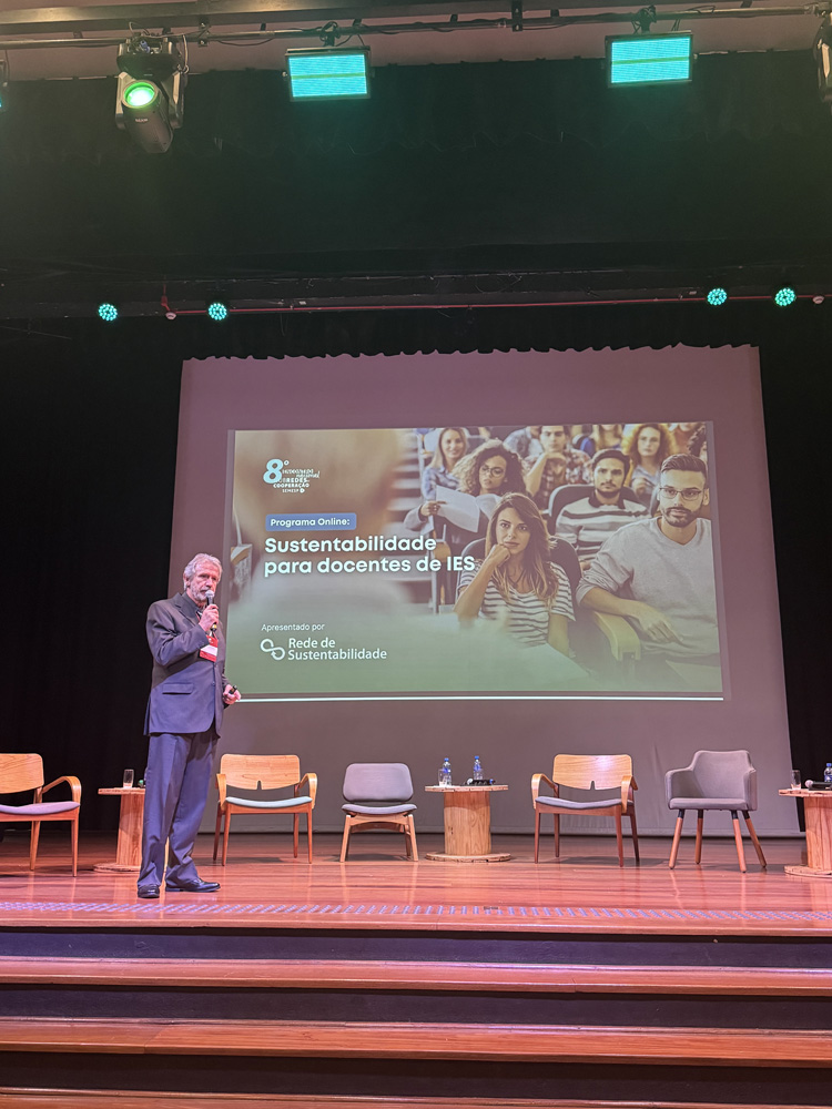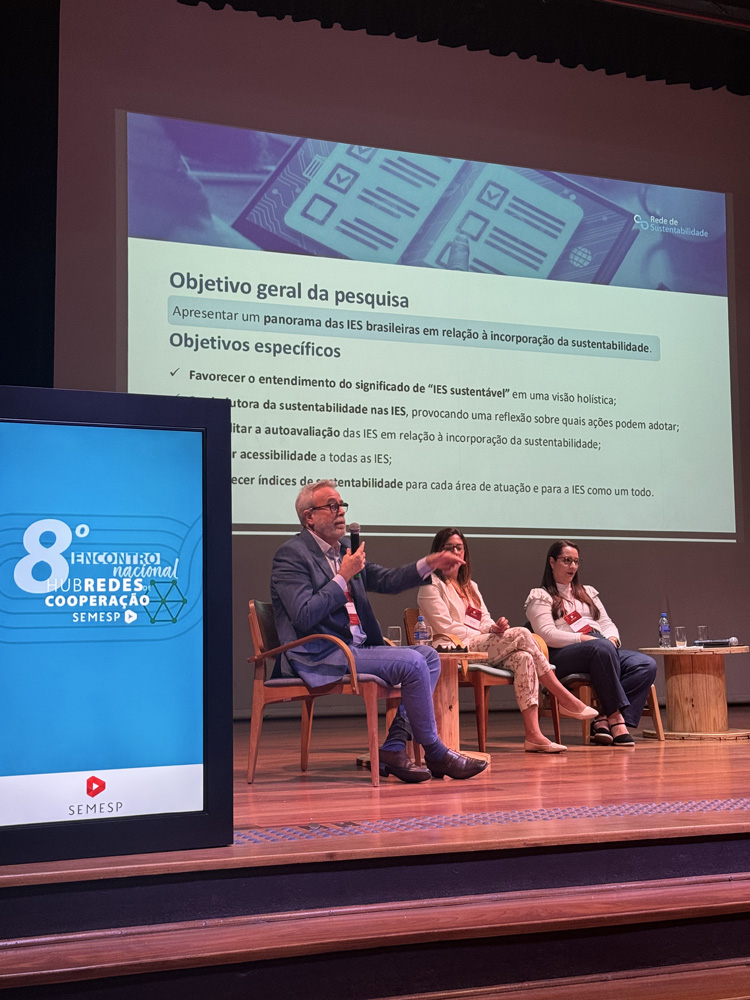 Durante o encontro, a FHO participou de dois painéis representando a Rede de Sustentabilidade, da qual faz parte. O Reitor do Centro Universitário, Prof. Dr. José Antonio Mendes, apresentou o lançamento do módulo 3 do Programa de Sustentabilidade para Docentes de IES, desenvolvido pela Rede de Sustentabilidade e oferecido gratuitamente pela Universidade Corporativa Semesp. A iniciativa tem como objetivo formar os educadores para entender e ensinar sustentabilidade, ampliando o compromisso do setor com práticas responsáveis e integradas.