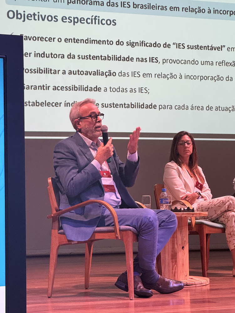 Na sequência, o Diretor Administrativo-Financeiro da FHO, Francisco Elíseo Fernandes Sanches, participou de um painel ao lado de representantes de outras instituições, apresentando a pesquisa sobre sustentabilidade no ensino superior, que teve como objetivo principal apresentar um panorama das instituições de ensino brasileiras em relação à incorporação da sustentabilidade.
