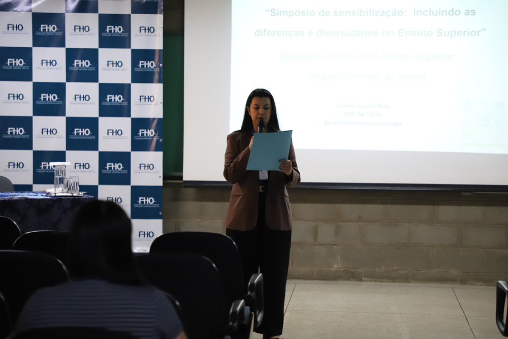 No dia 23 de outubro, a FHO, por meio do Núcleo de Tecnologias Assistivas e Acessibilidade (NTA) promoveu a palestra ''Educação Inclusiva no Ensino Superior: responsabilidade de todos!'', ministrada pela Psicóloga e Neuropsicóloga Mª Camila Santos Dias. Realizada no Auditório do Prédio Central, a atividade reuniu docentes e funcionários administrativos em um momento de reflexão e sensibilização sobre os desafios e as práticas voltadas à inclusão no ambiente acadêmico.