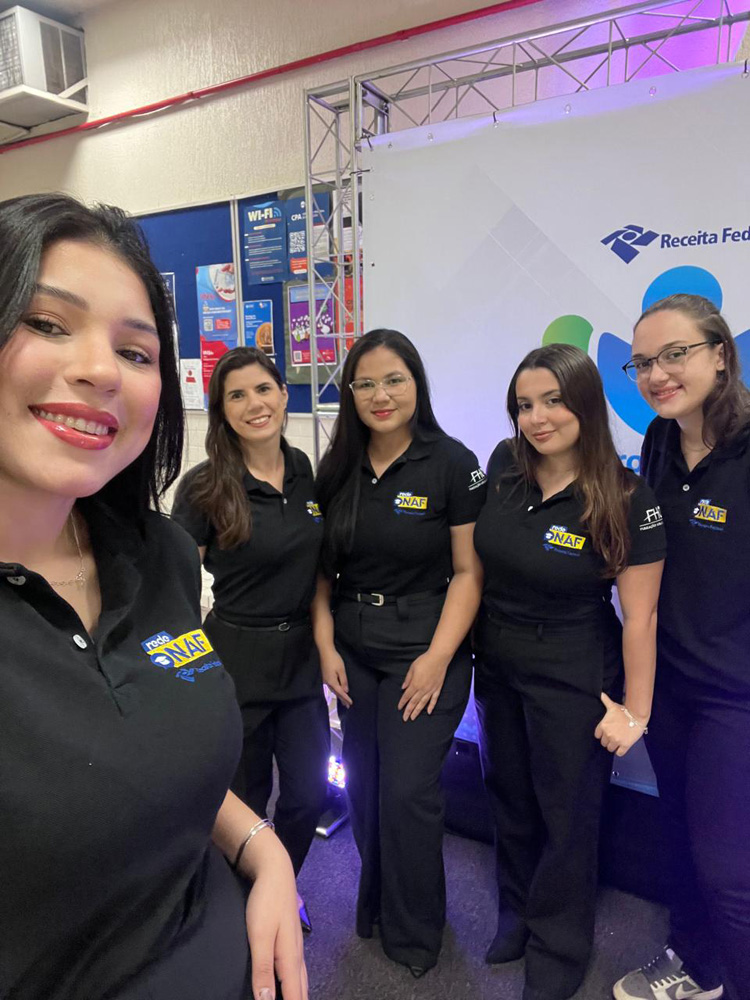 Durante o evento, as alunas integraram o Painel Temático ''Parcerias entre a Receita Federal e as Universidades na Transformação de Mercadorias Apreendidas'', no qual compartilharam a experiência de participação no 1º Hackathon da Receita Federal, realizado em maio deste ano.