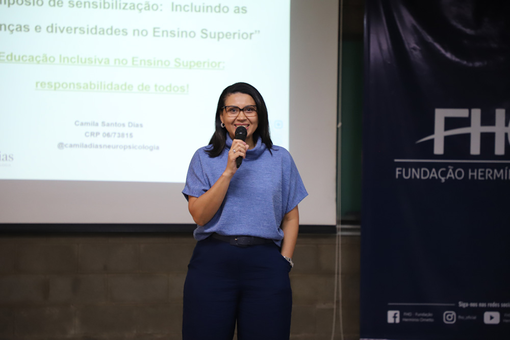 No dia 23, o V Simpósio de Sensibilização, promovido pelo Núcleo de Tecnologias Assistivas e Acessibilidade (NTA), também reuniu docentes e funcionários administrativos em torno do tema ''Educação Inclusiva no Ensino Superior: responsabilidade de todos!'', apresentado pela Psicóloga e Neuropsicóloga Mª Camila Santos Dias.