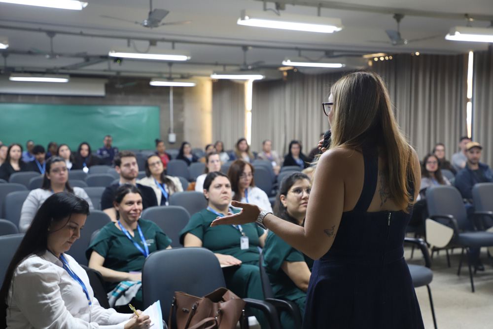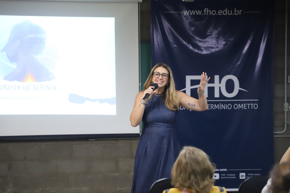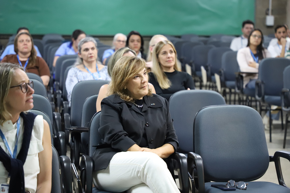 E encerrando a programação, a Profª Maria Veridiana Gagliardi Macedo, psicóloga do Núcleo de Apoio Psicopedagógico (NAP) conduziu a palestra ''Gerenciamento do estresse e bem-estar emocional'', propondo estratégias para o cuidado com a saúde mental e o equilíbrio nas rotinas de trabalho.