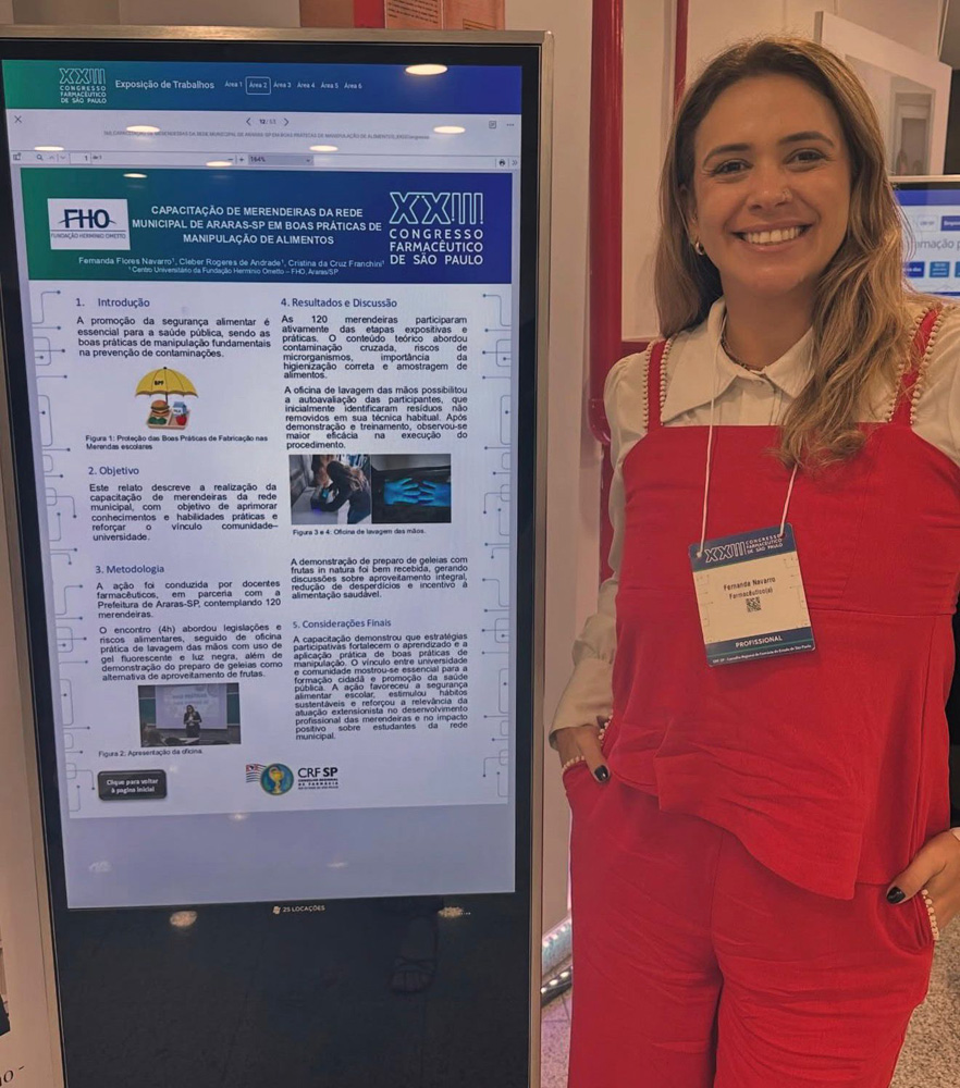 Entre os dias 10 e 12 de outubro, a equipe de professoras do curso de Farmácia da FHO participou do XXIII Congresso Farmacêutico de São Paulo, um dos mais importantes eventos da área no Estado, que reuniu profissionais, pesquisadores e estudantes para discutir avanços científicos e práticas inovadoras na profissão.