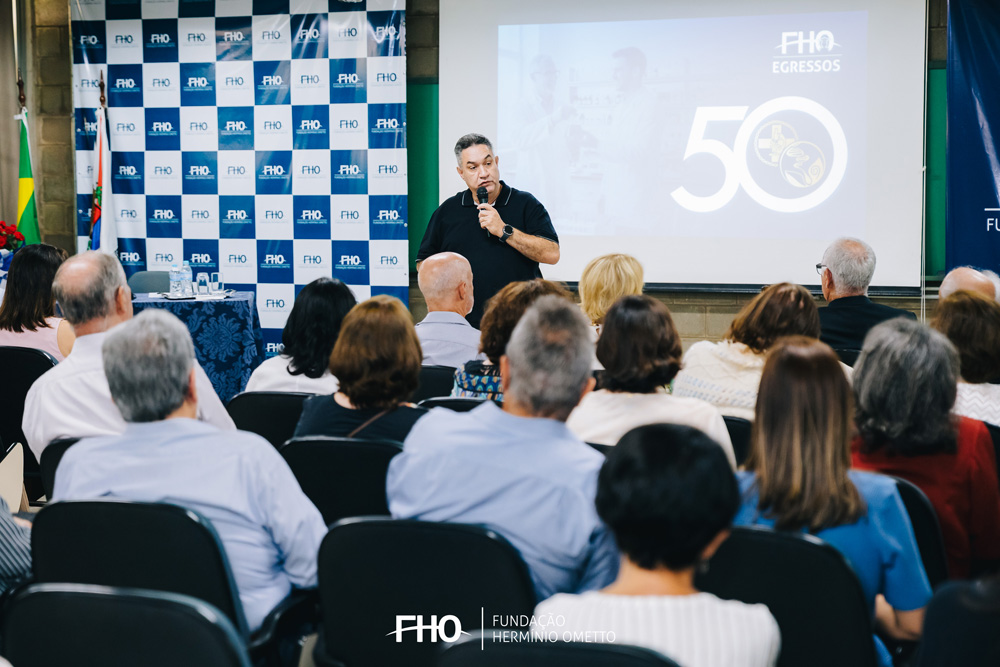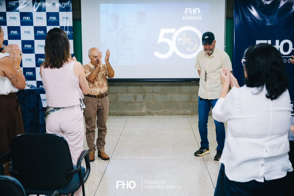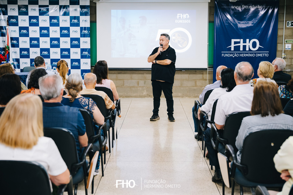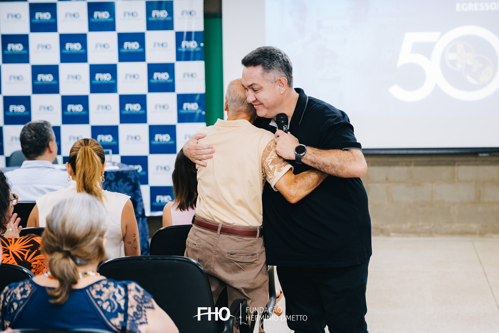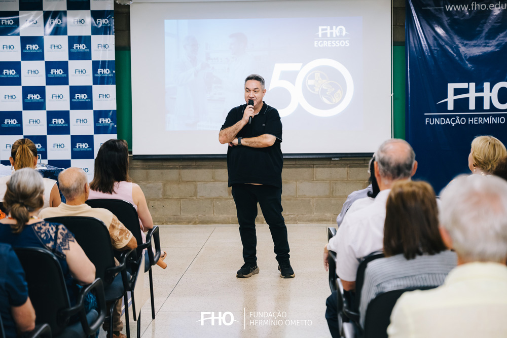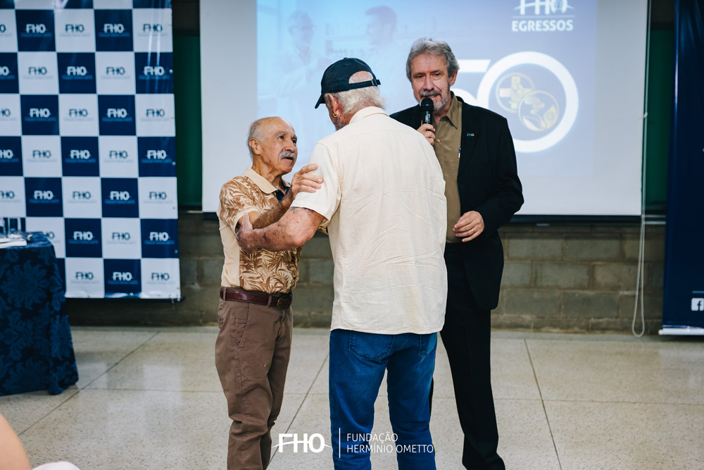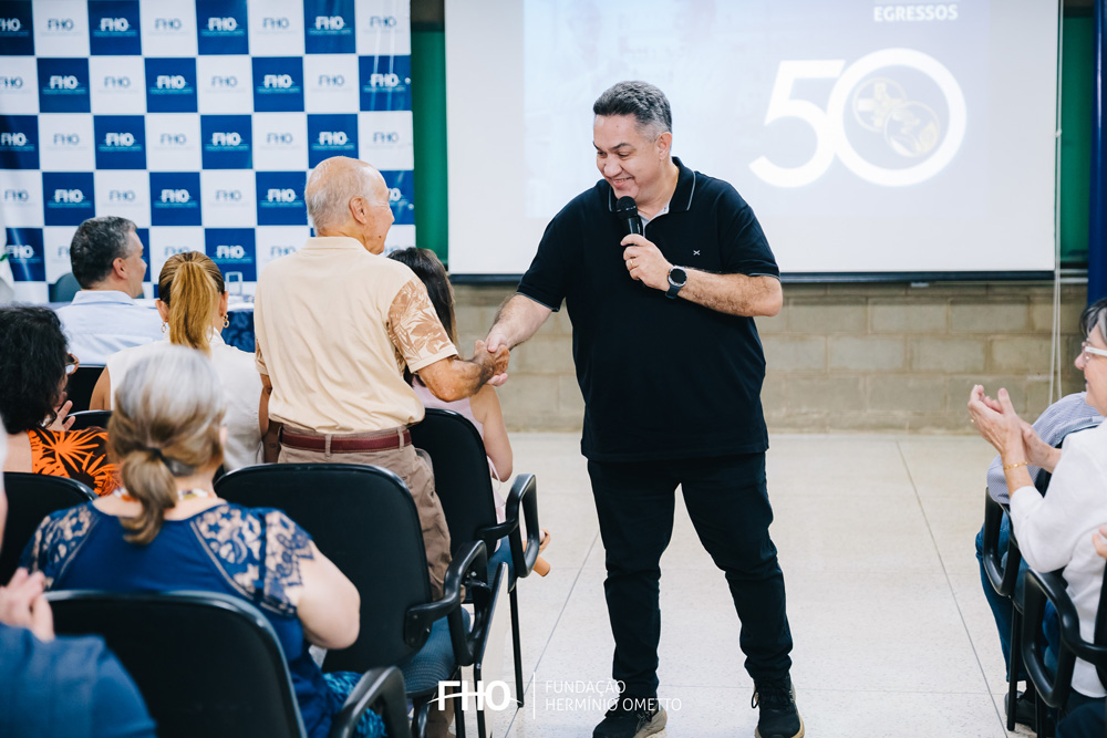 O encontro reuniu egressos, professores, coordenadores e gestores da FHO em uma manhã marcada por emoção, memórias e reconhecimento, celebrando o legado deixado pelos fundadores e o papel transformador da educação ao longo de meio século.