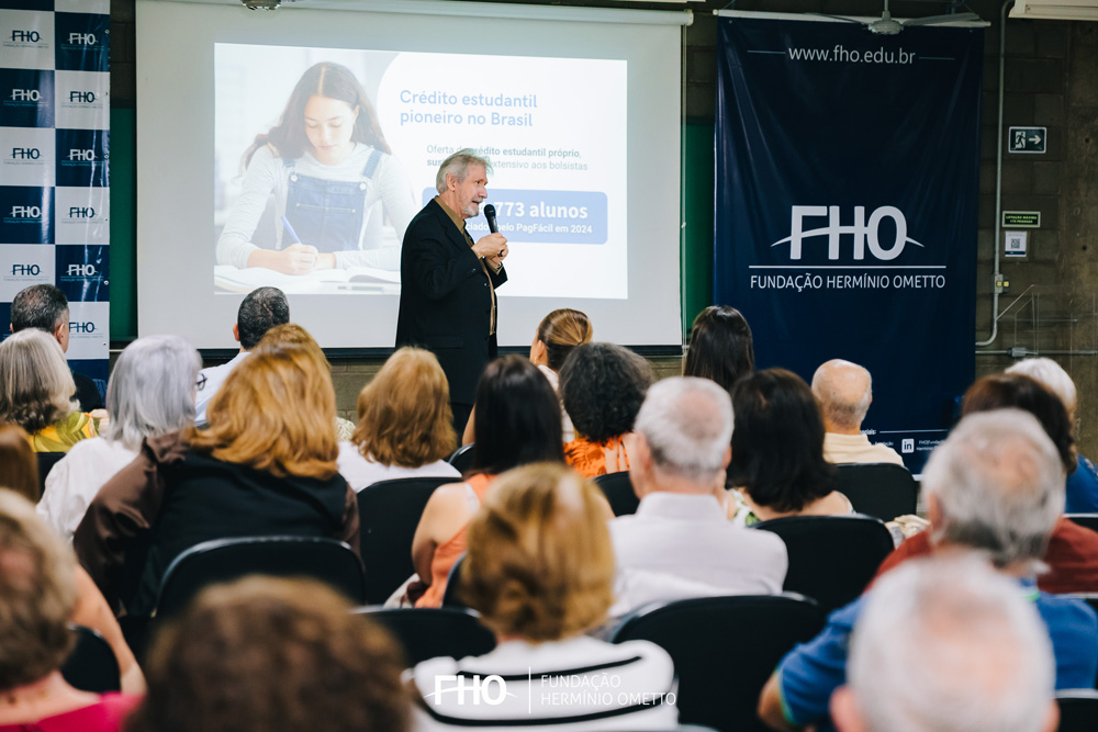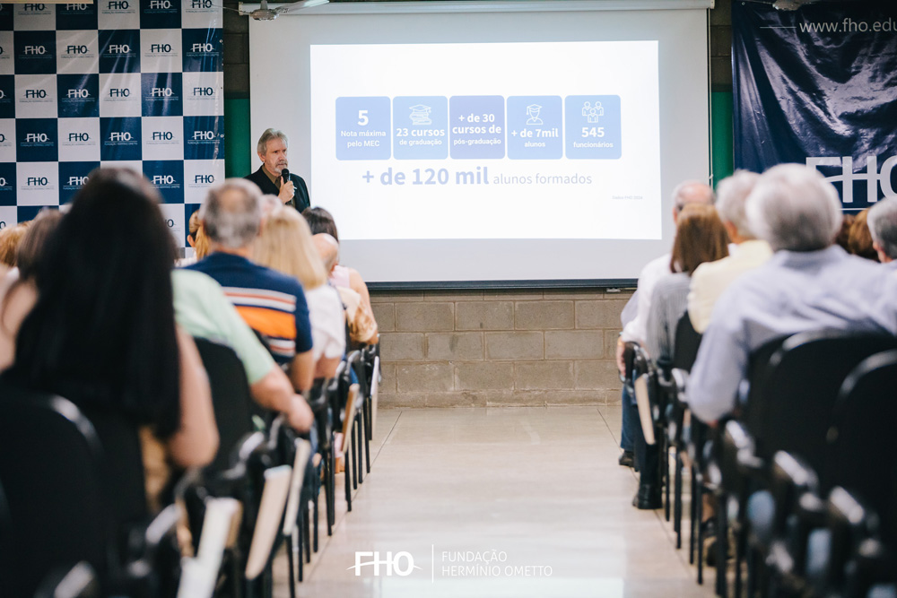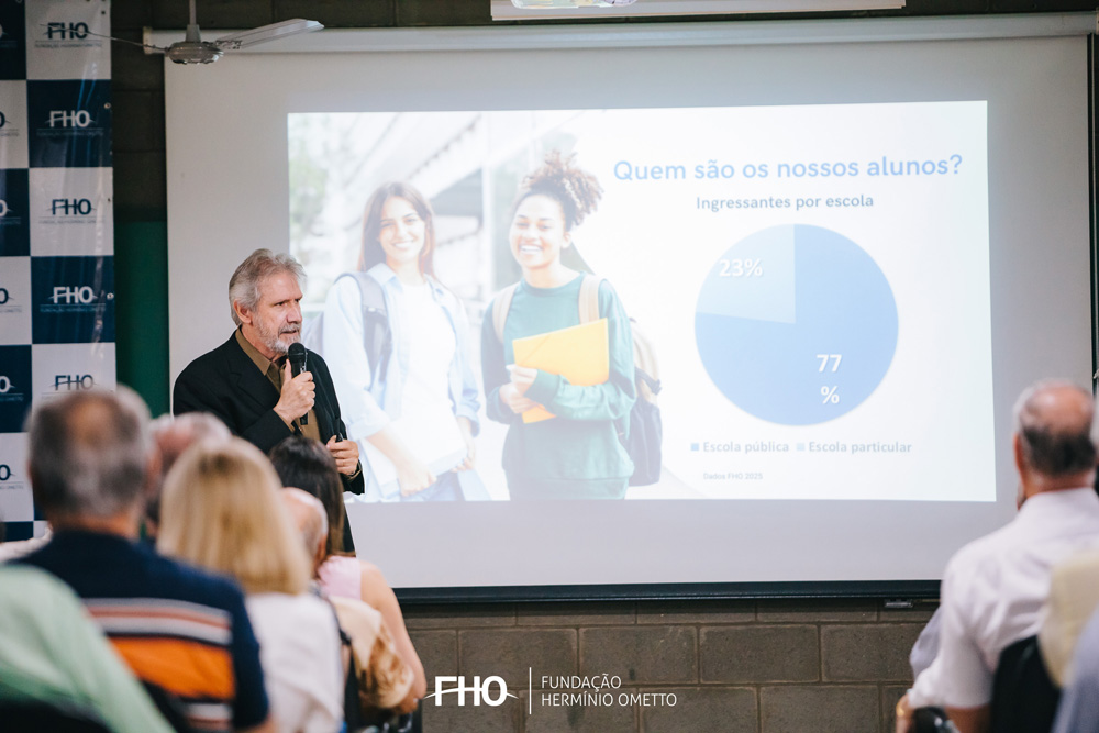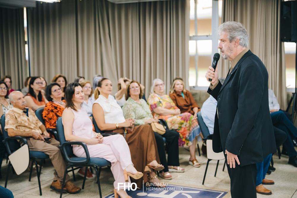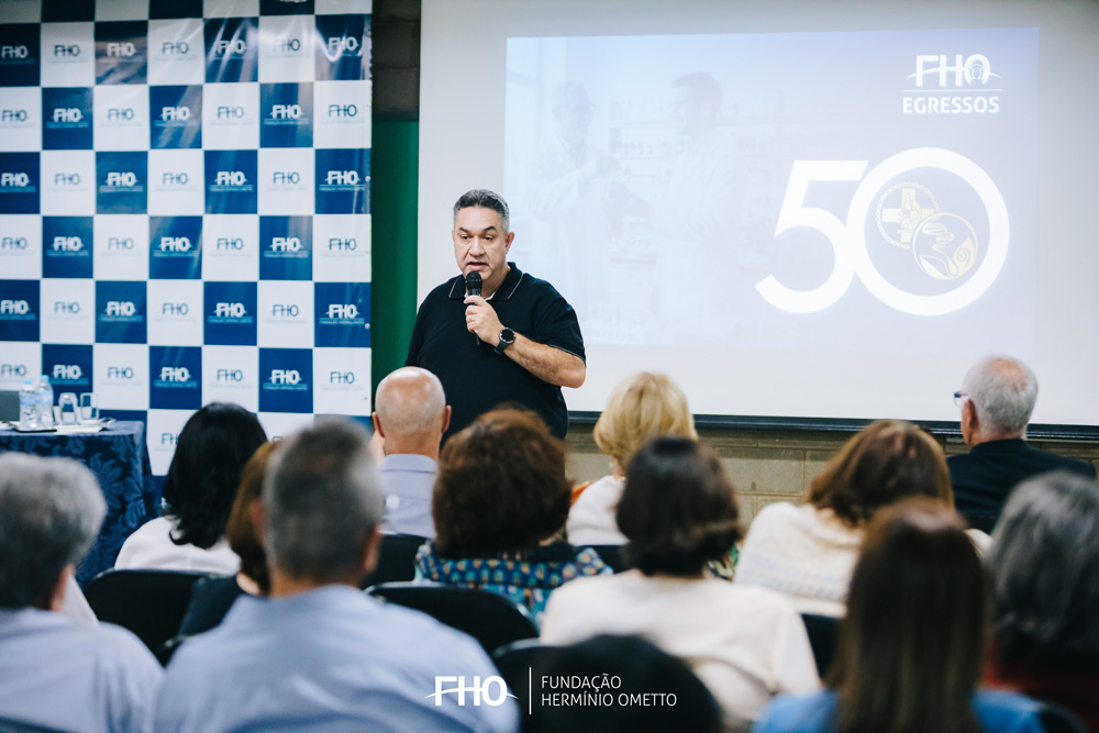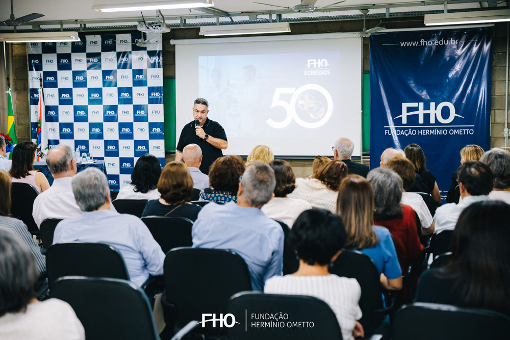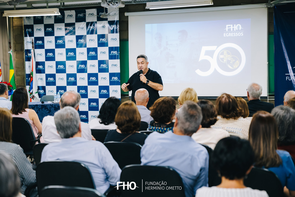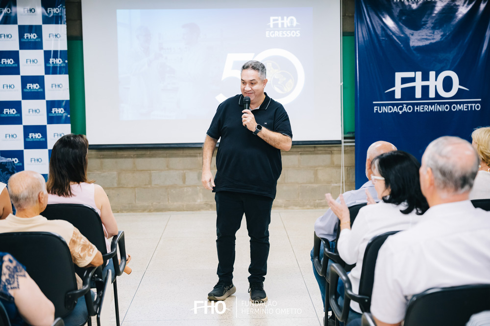 O encontro reuniu egressos, professores, coordenadores e gestores da FHO em uma manhã marcada por emoção, memórias e reconhecimento, celebrando o legado deixado pelos fundadores e o papel transformador da educação ao longo de meio século.