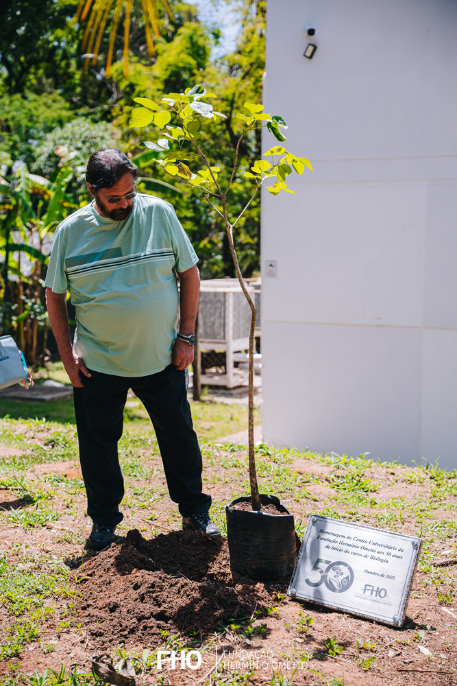 Encerrando a solenidade, dois plantios de mudas comemorativas foram realizados no Campus, representando a continuidade e o crescimento do legado das Ciências Biológicas e da Biomedicina na FHO. Uma manhã de memórias que ficará marcada para sempre na história.