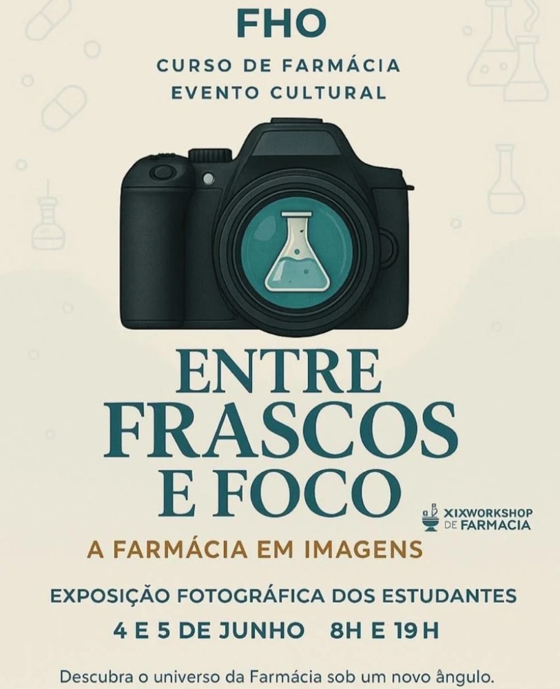 O curso de Farmácia promoveu, durante o XIX Workshop de Farmácia - ''Farmácia na prática: construindo um futuro de cuidado e bem-estar'', uma atividade cultural que integrou arte e vivências acadêmicas: a exposição fotográfica ''Entre Frascos e Foco''. A mostra reuniu imagens produzidas pelos estudantes, retratando momentos marcantes de suas trajetórias ao longo do curso.