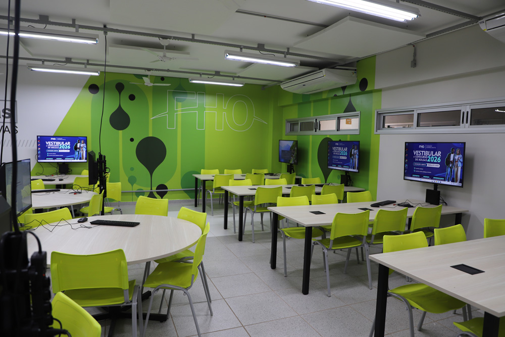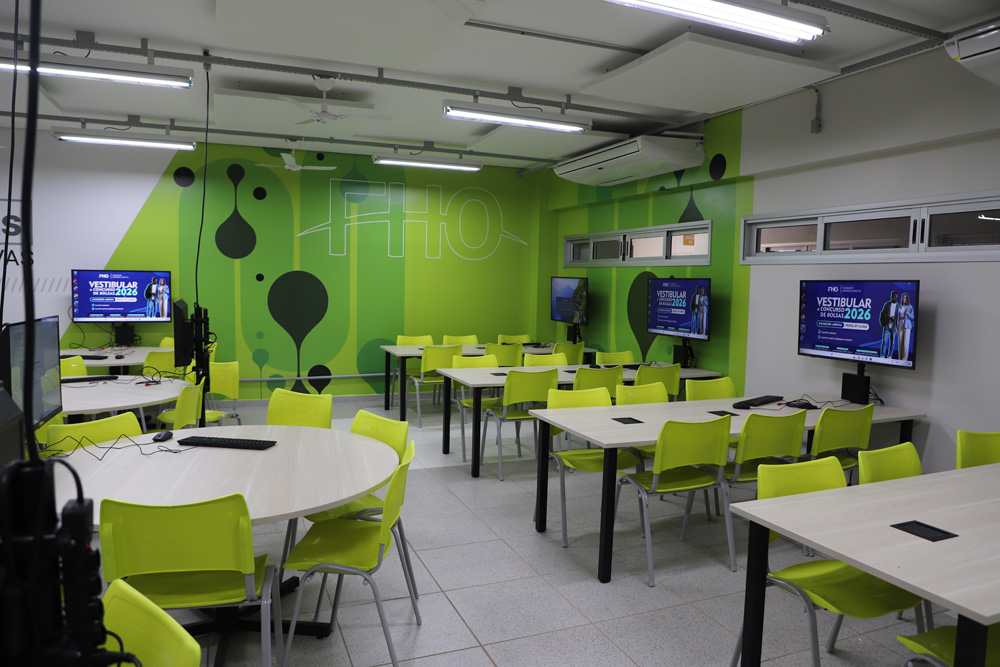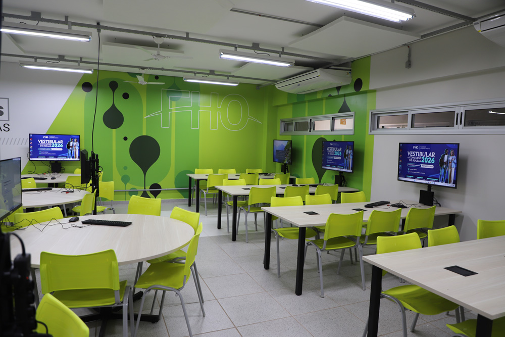 Além da tecnologia de ponta, que permite o compartilhamento de informações em tempo real por meio de TVs e computadores, o bem-estar dos usuários foi prioridade no projeto. As salas possuem tratamento acústico, são totalmente climatizadas e apresentam uma decoração moderna, criando um ambiente propício à expressão e à criatividade. O formato em mesas de reunião favorece o trabalho coletivo e o contato ''olho no olho'', fortalecendo a troca entre alunos e professores. Com essa entrega, a FHO reafirma seu compromisso em oferecer uma formação sólida e conectada com as inovações educacionais, garantindo que o aluno seja o protagonista do seu processo de aprendizagem.