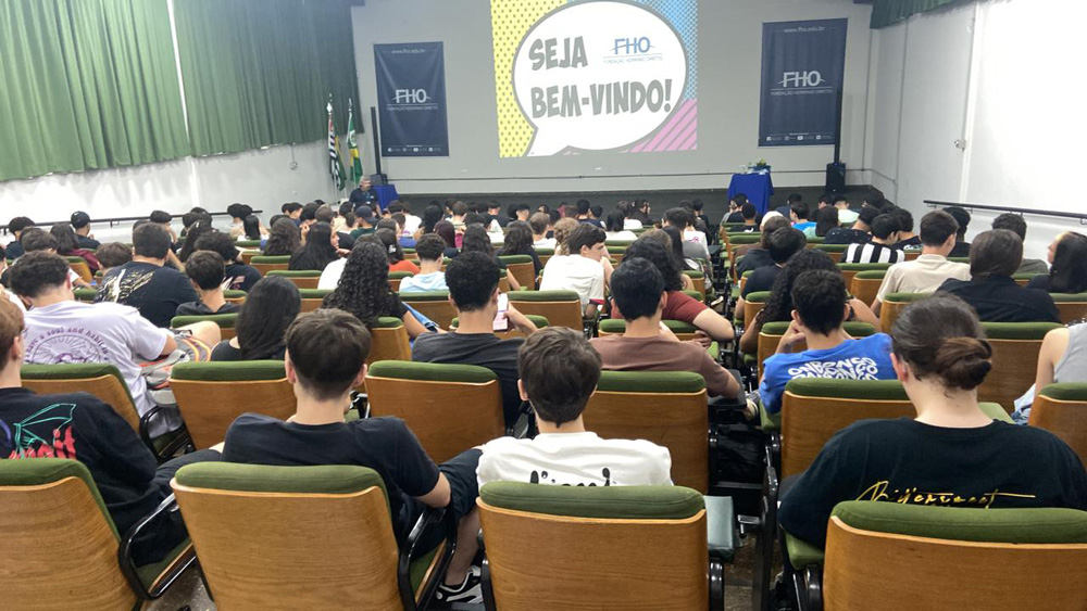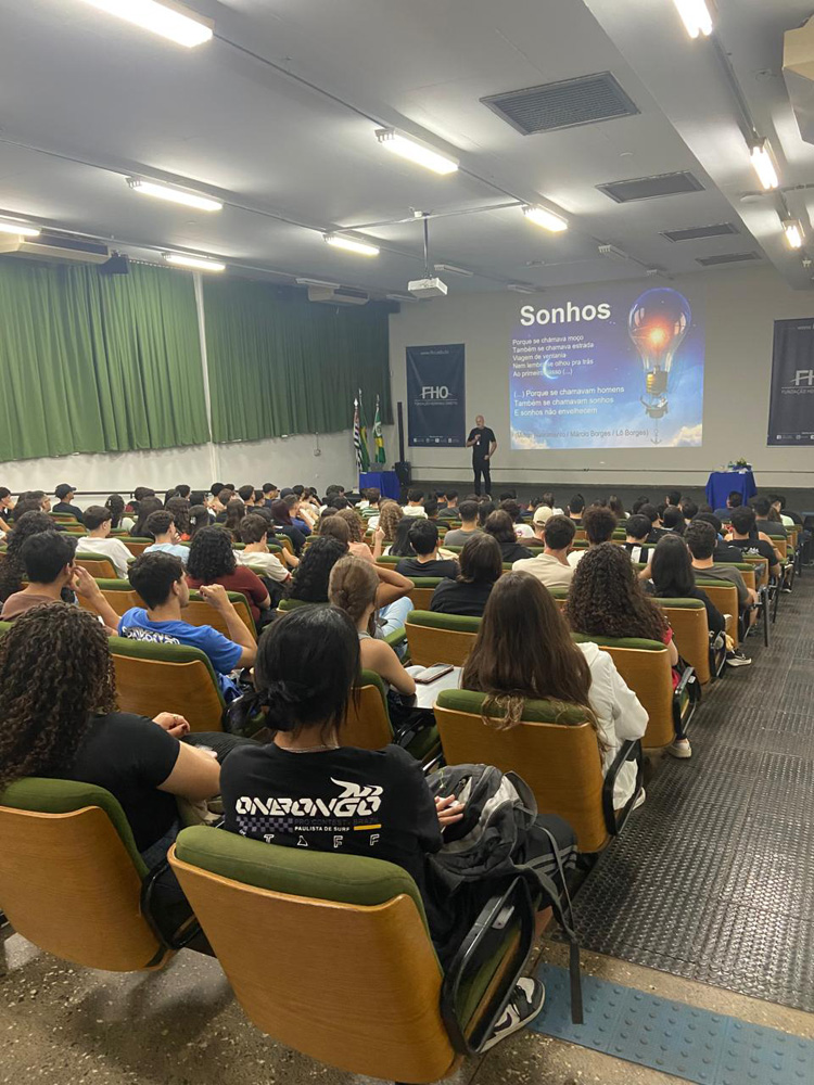 O novo Campus da FHO em Santa Bárbara d'Oeste viveu uma noite de conexão e aprendizado no segundo dia de aulas. Para dar as boas-vindas aos calouros e instigar o pensamento crítico, o Prof. Huemerson Maceti, coordenador do Núcleo Comum das Engenharias, conduziu a palestra ''Conhecimento para quê(m)?''.