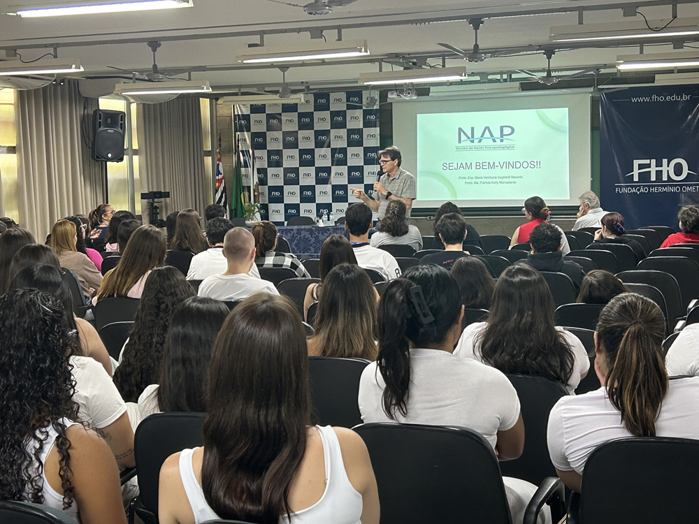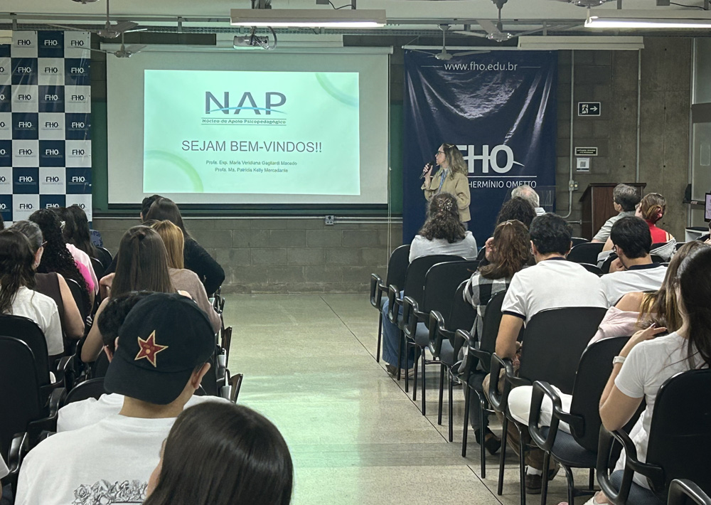 Um dos pontos altos da recepção foi a apresentação do Núcleo de Apoio Psicopedagógico (NAP). Composto por uma psicóloga e uma psicopedagoga, o núcleo desempenha um papel vital no acompanhamento dos estudantes. Durante as boas-vindas, a Profa. Esp. Maria Veridiana Gagliardi Macedo detalhou os serviços de acolhimento e orientação oferecidos, essenciais para a adaptação acadêmica e o bem-estar emocional durante a graduação.