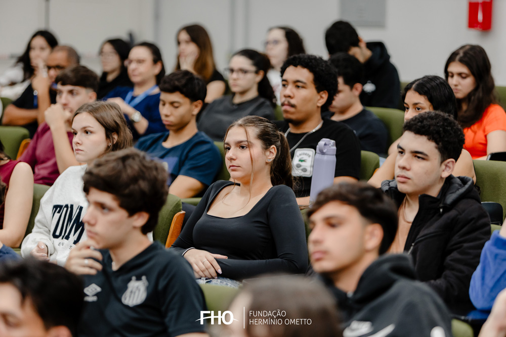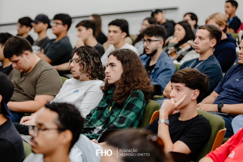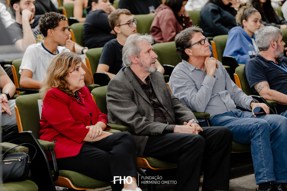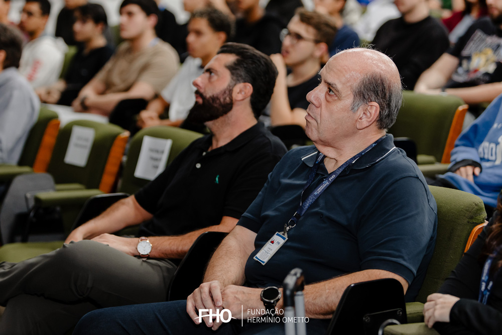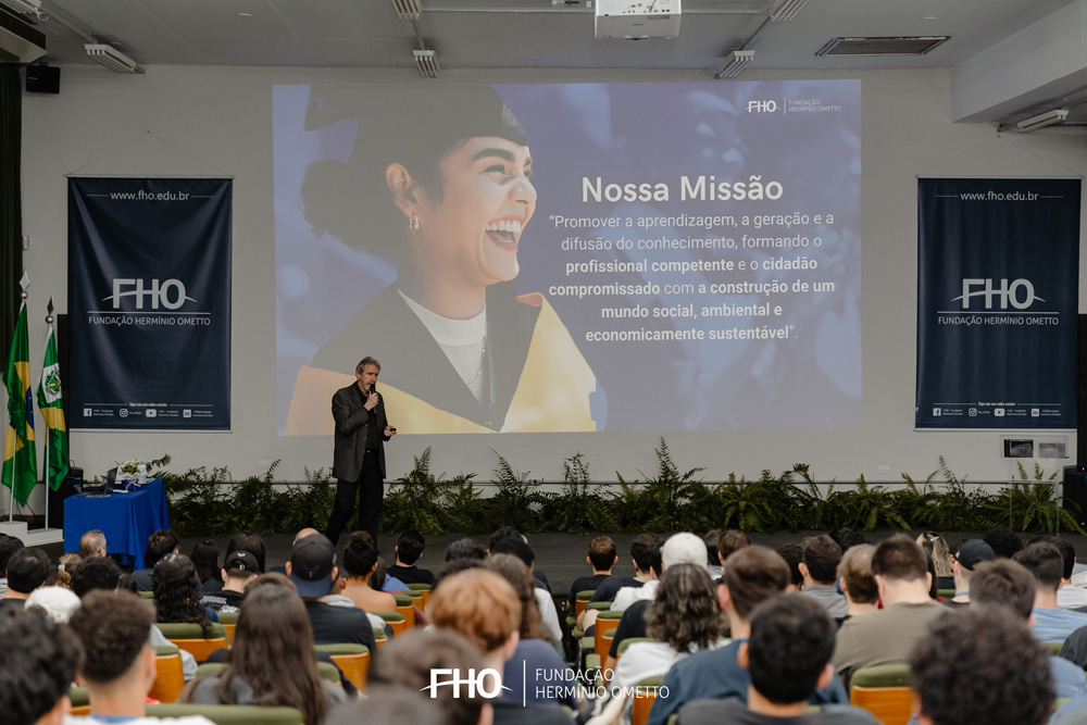 O Pró-Reitor de Graduação, Dr. Olavo Raymundo Jr., enfatizou o diferencial do modelo de ensino da FHO, focado na presencialidade e nas metodologias ativas. ''Nosso processo é 100% presencial e visa motivar, acolher e desafiar, para gerar uma aprendizagem transformadora'', explicou Dr. Olavo. Ele destacou que 50% do tempo das aulas é dedicado à resolução de problemas práticos. ''O que se vive como experiência, se aprende mais. Estar aqui e participar da aula é a alma do aprendizado''.