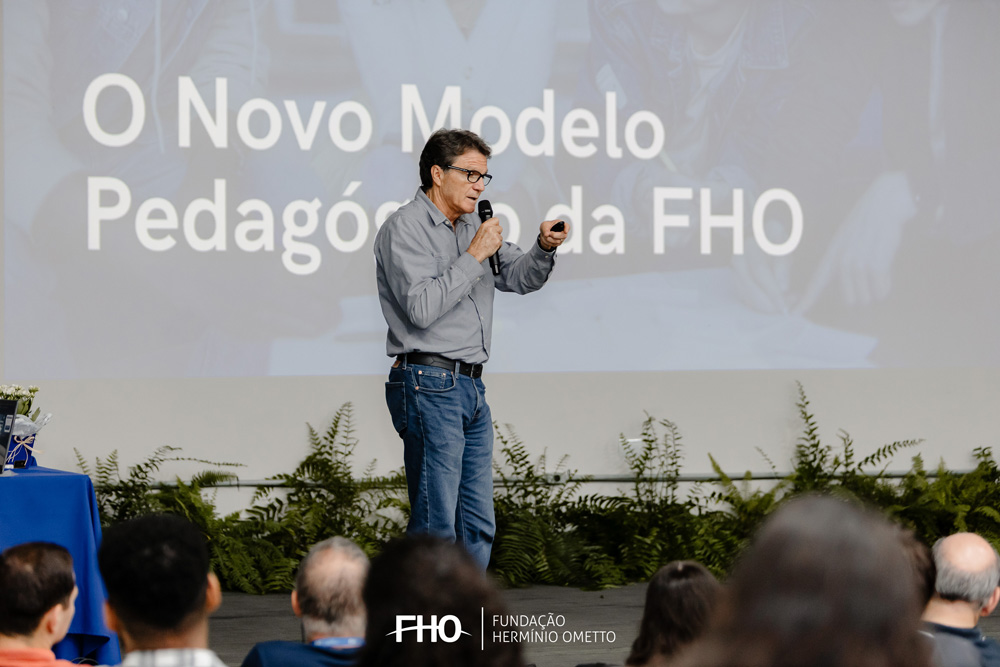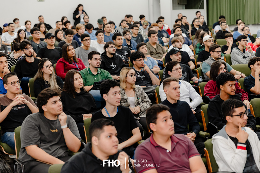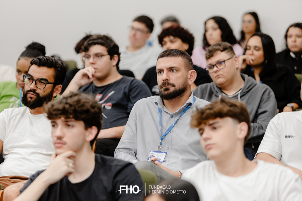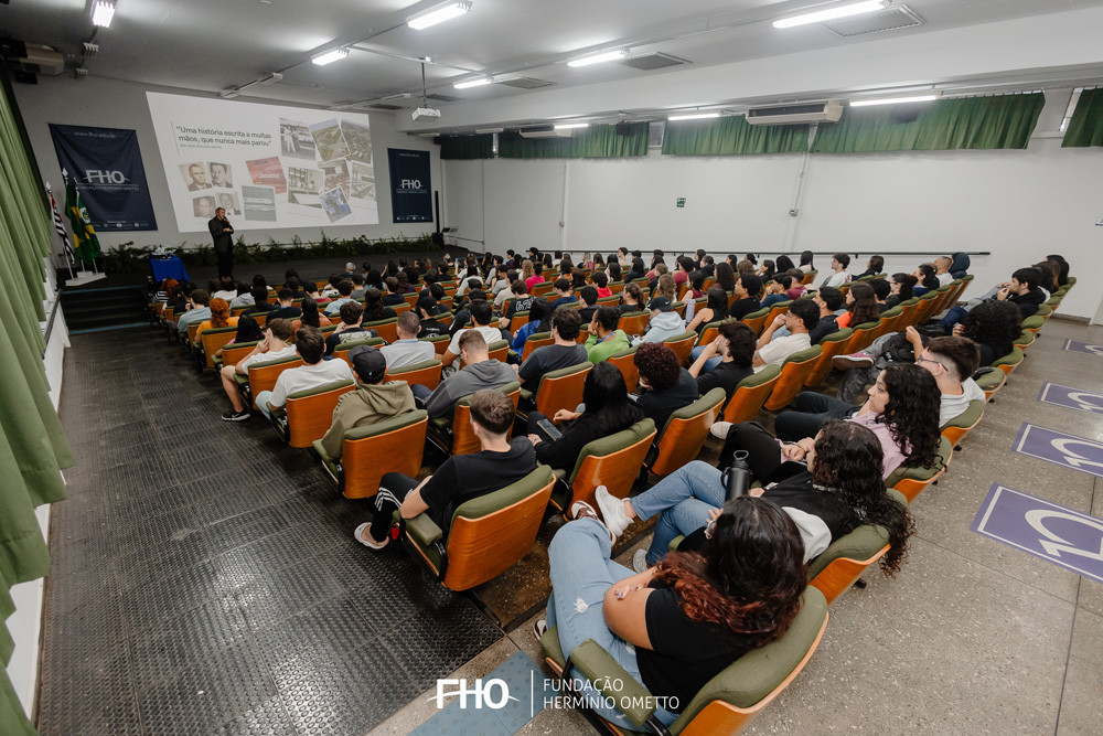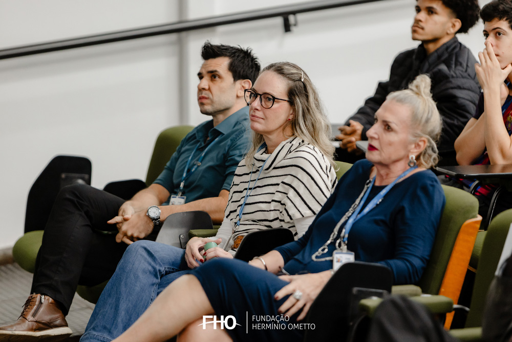 O Pró-Reitor de Graduação, Dr. Olavo Raymundo Jr., enfatizou o diferencial do modelo de ensino da FHO, focado na presencialidade e nas metodologias ativas. ''Nosso processo é 100% presencial e visa motivar, acolher e desafiar, para gerar uma aprendizagem transformadora'', explicou Dr. Olavo. Ele destacou que 50% do tempo das aulas é dedicado à resolução de problemas práticos. ''O que se vive como experiência, se aprende mais. Estar aqui e participar da aula é a alma do aprendizado''.