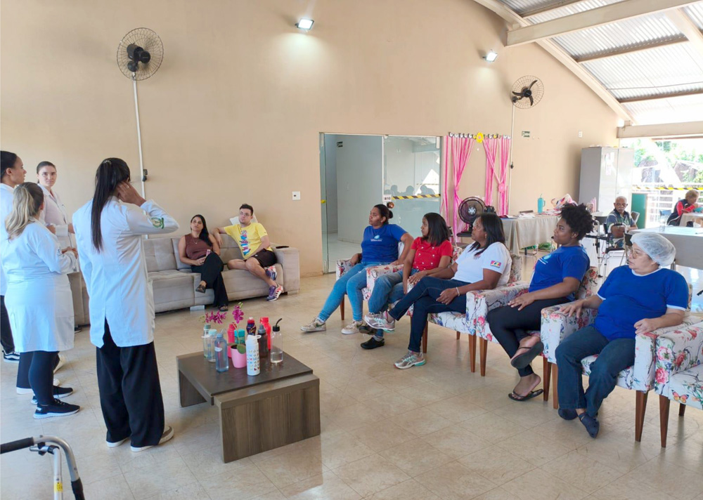 O curso de Fisioterapia da FHO promoveu no dia 24 de março a ação ''Educação Permanente em Saúde: Treinamento de Transferência em Idosos'', junto aos colaboradores do Centro Dia do Idoso (CDI) ''Instituto Acolher''. Sob a supervisão da Profª. Thainá Faria de Andrade, os estudantes puderam aplicar conhecimentos técnicos para melhorar a rotina de cuidados de quase 20 idosos atendidos diariamente pela unidade.