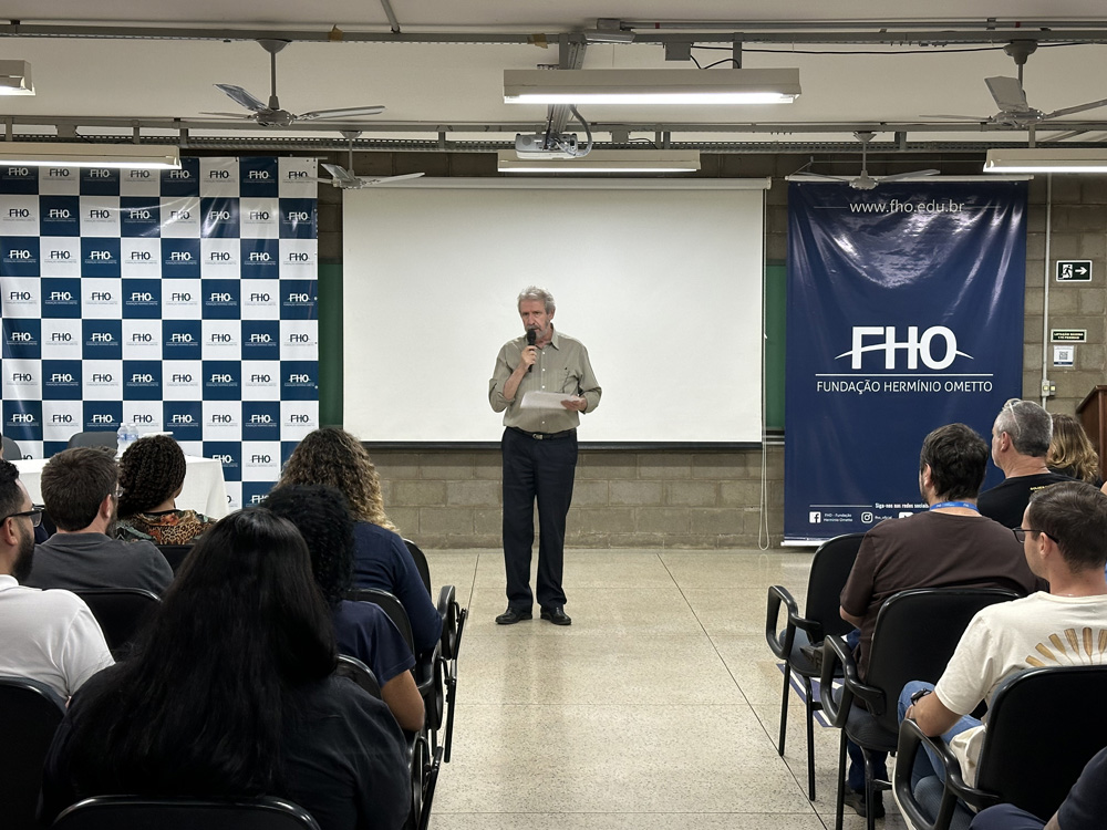 Durante a solenidade, estiveram reunidos os membros da gestão 2025/2026; o Técnico de Segurança do Trabalho, Leonardo Pereira Marques e o Reitor da FHO, Prof. Dr. José Antonio Mendes, que destacou o caráter colaborativo da comissão e como essa união de diferentes setores fortalece o ambiente de trabalho. ''A CIPA é uma oportunidade que o colaborador tem de trabalhar em equipe e compartilhar experiências. Quando eles se juntam pensando na segurança e na melhor forma da FHO cuidar dos seus profissionais, a Instituição cresce. Essa doação de cada colaborador é o espírito que faz com que a CIPA seja um órgão representativo e vital para nós'', afirmou o Reitor.