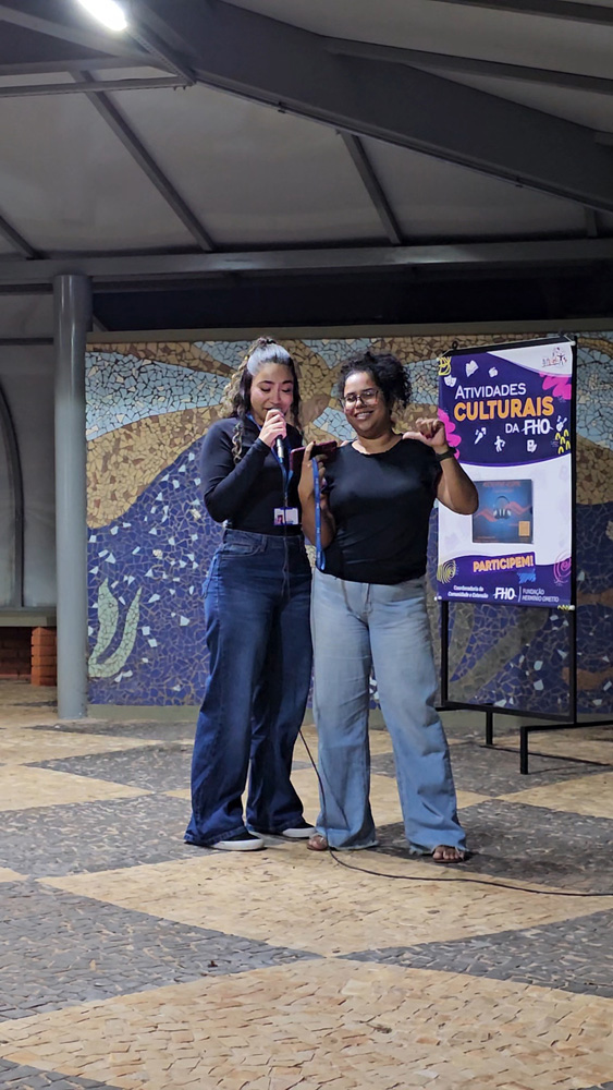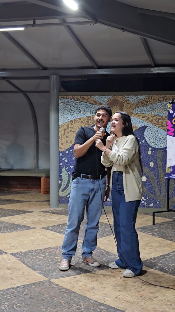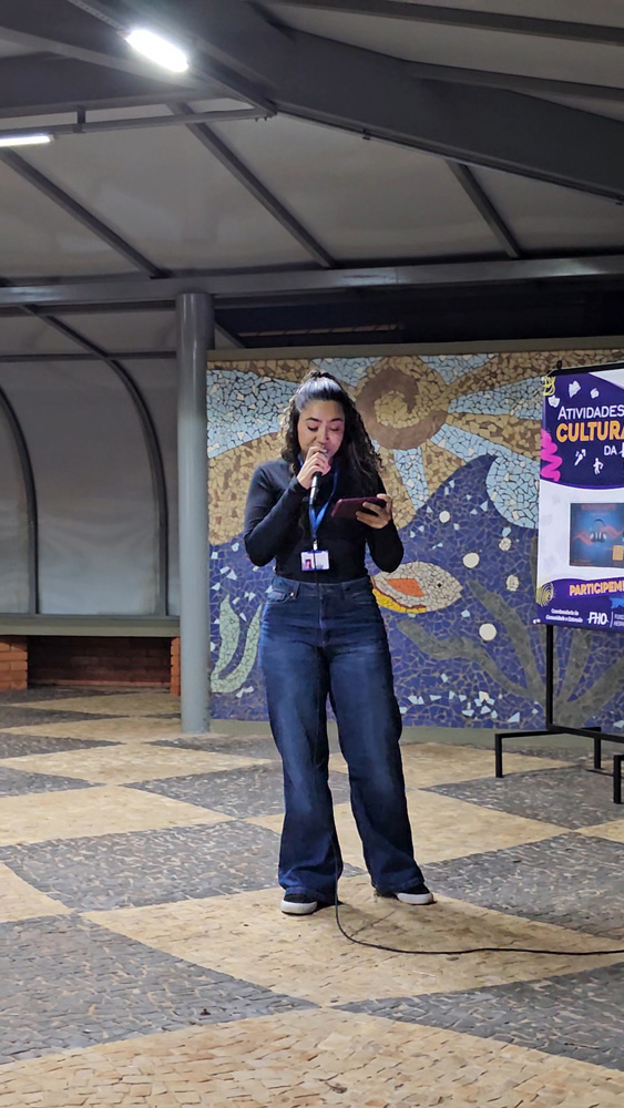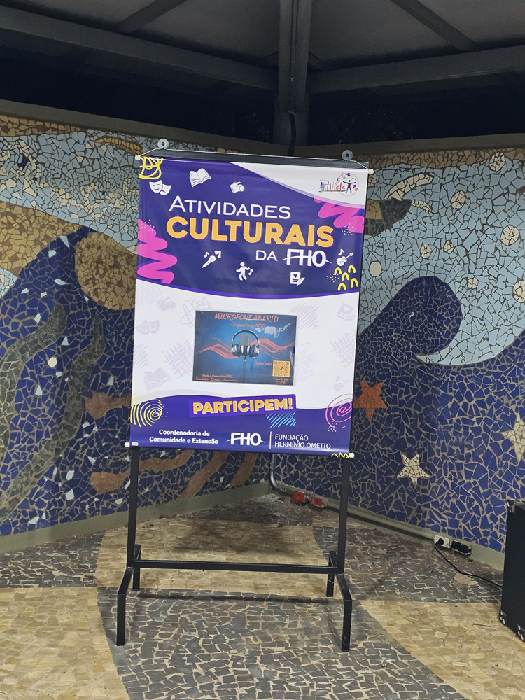 No dia 23 de abril, o espaço de convivência do Campus da FHO em Santa Bárbara d'Oeste transformou-se em um palco de expressão e criatividade. A atividade cultural Microfone Aberto, parte integrante do Projeto Art'Vida, reuniu alunos, professores e colaboradores para um momento de descontração e fomento à arte.