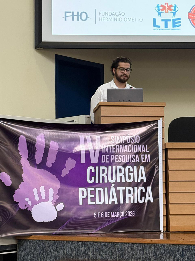 O curso de Enfermagem da FHO celebrou, recentemente, uma conquista que reforça o protagonismo acadêmico. O aluno Matheus Beck Bratfich Penteado, do 7º período da graduação, foi convidado a palestrar no IV Simpósio Internacional de Pesquisa em Cirurgia Pediátrica, um evento de alto nível científico que reuniu referências da área médica.
